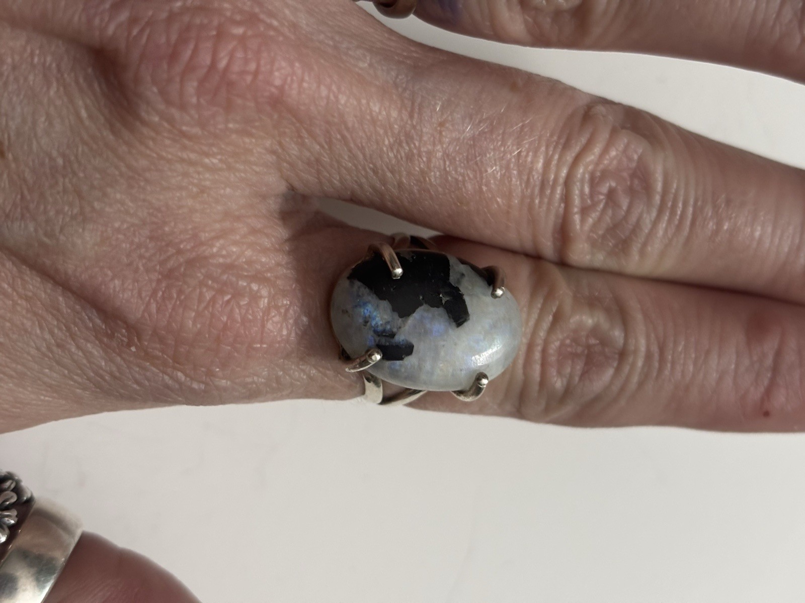 как выглядит Sterling Silver Rainbow Moonstone with Tourmaline Ring Size 6 фото