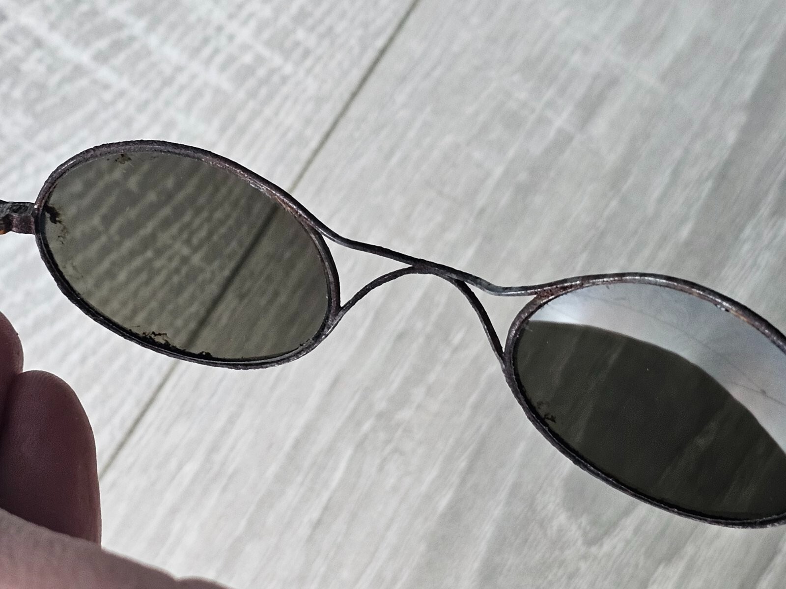 Antique 1890s Oval Wire-Rim Eyeglasses Tinted Glass Lenses Collector s Gem