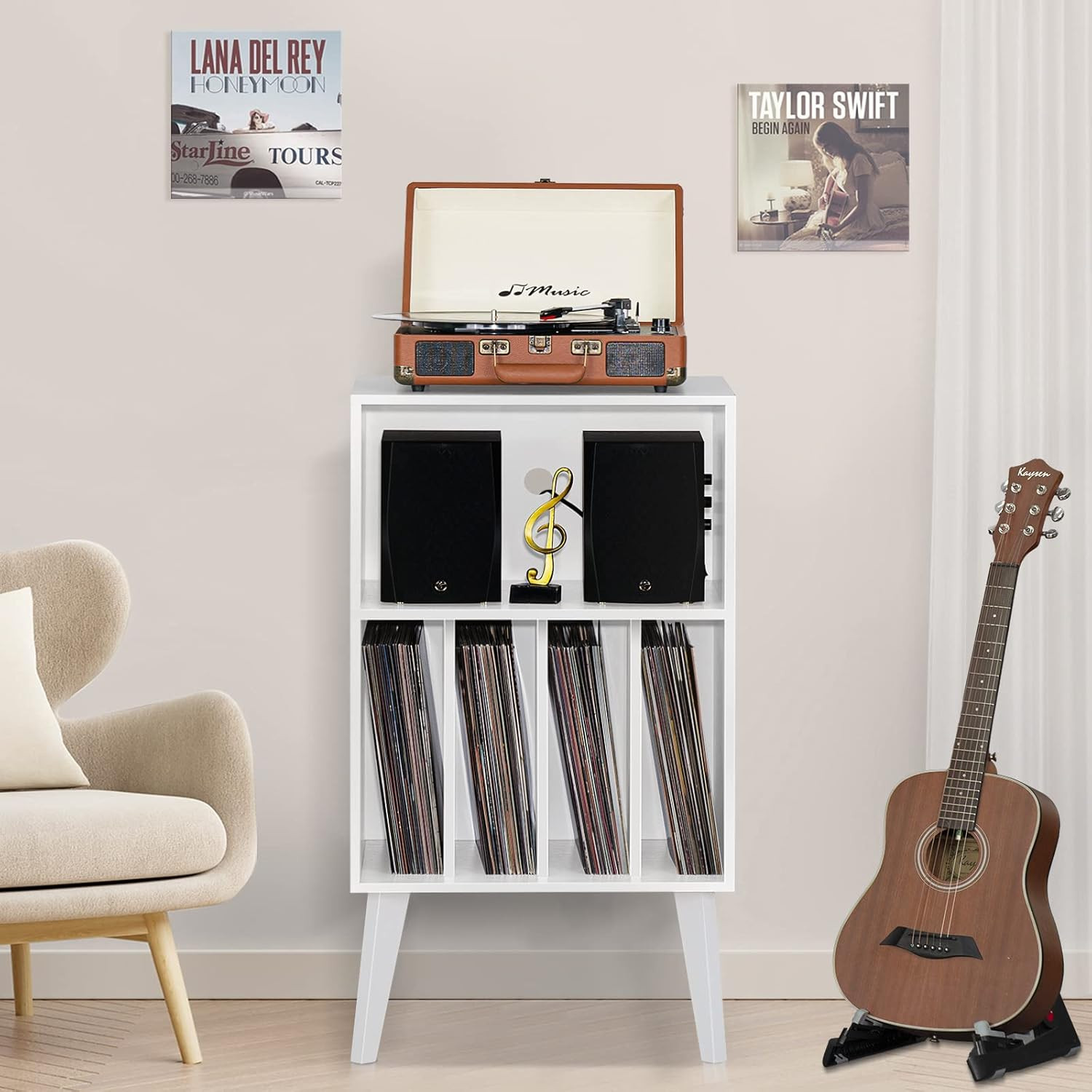 Mid-Century Record Player Stand with Storage for 160 Albums - White