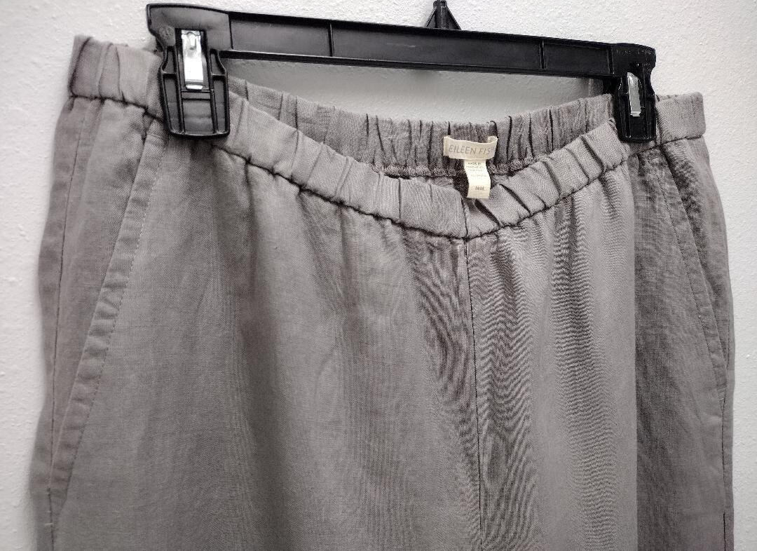 как выглядит Eileen Fisher Size M Smoke Gray Organic Linen Pants фото