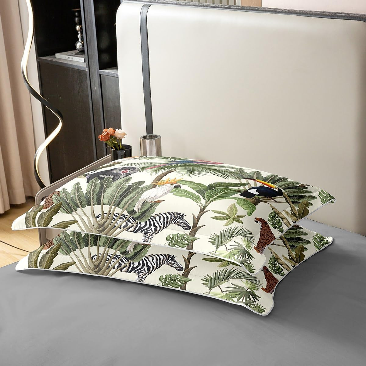 Tropical Wildlife King Size Bedding Set - Cotton Duvet Cover with Toucan Monke