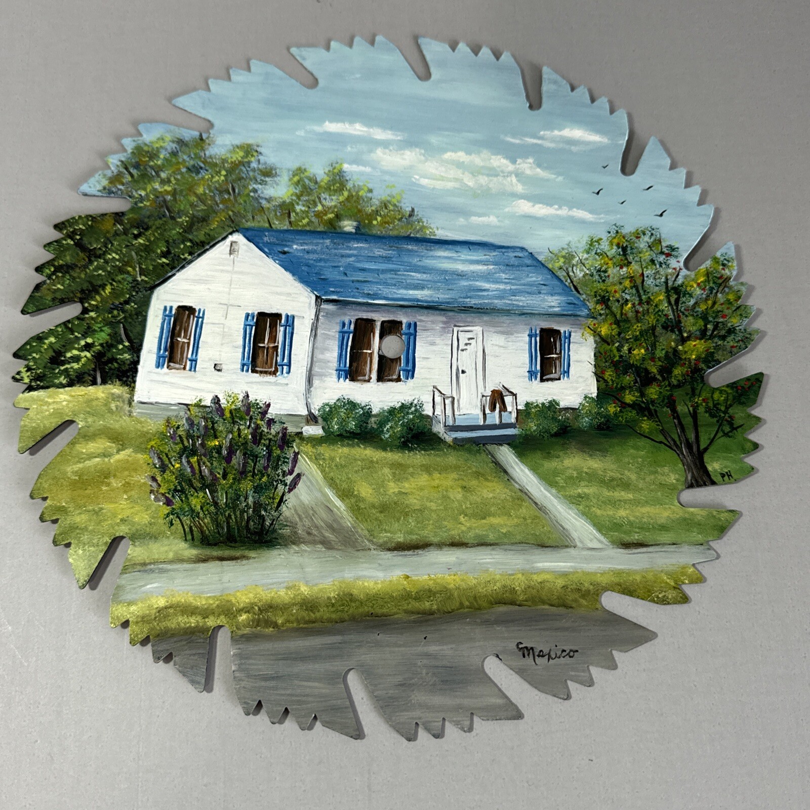 Vintage Hand Painted Round Saw Blade Small House Mexico, MO. Rustic 9 Signed PH