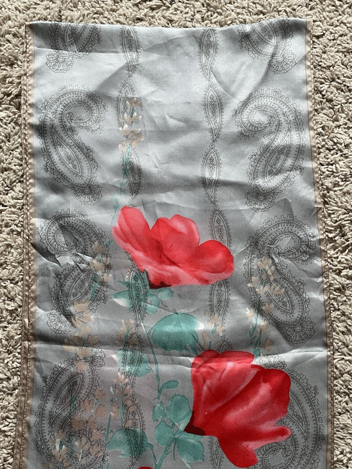 как выглядит Vintage Vera Neumann 100 Silk Scarf Gray Paisley Red Flowers 52 x 11 JAPAN фото
