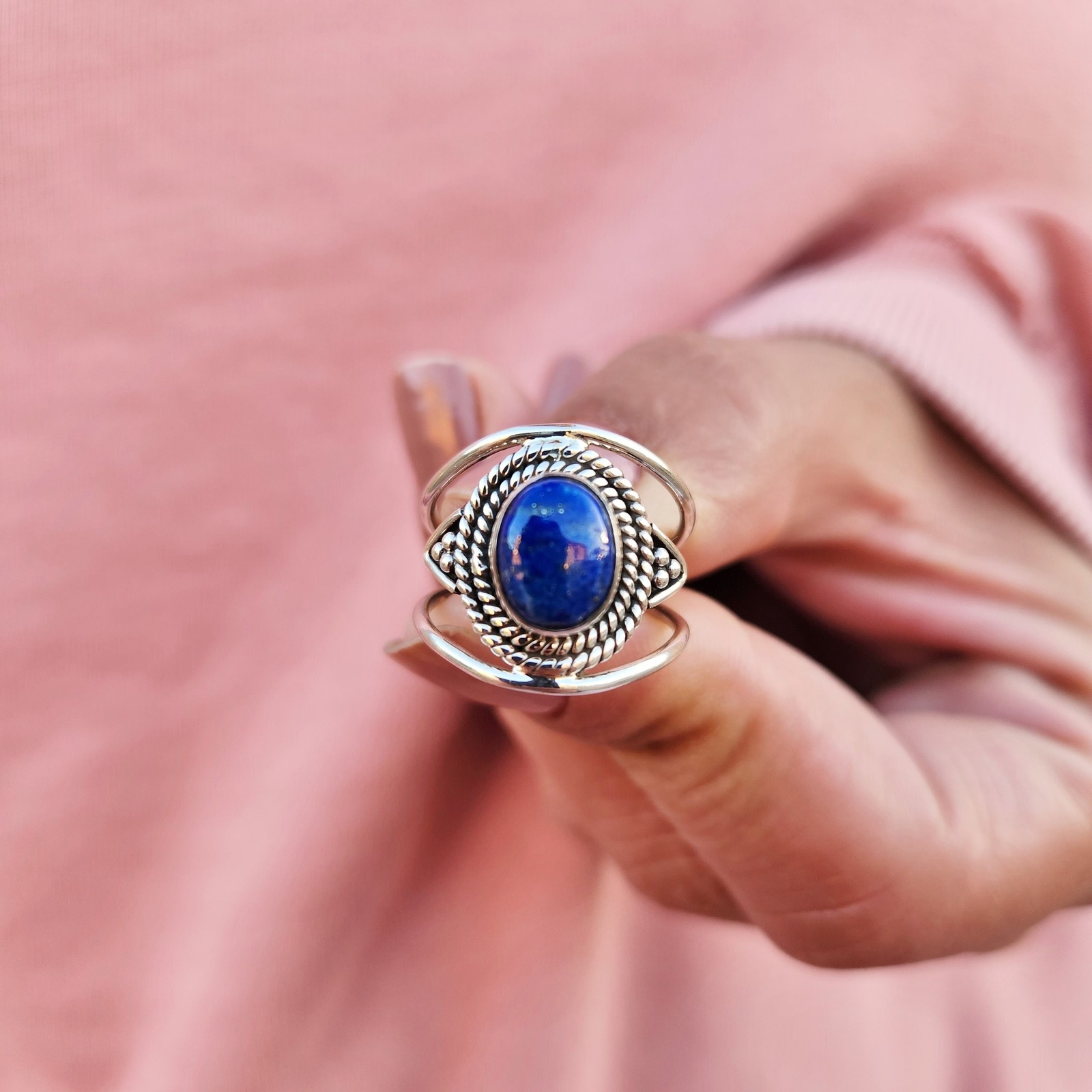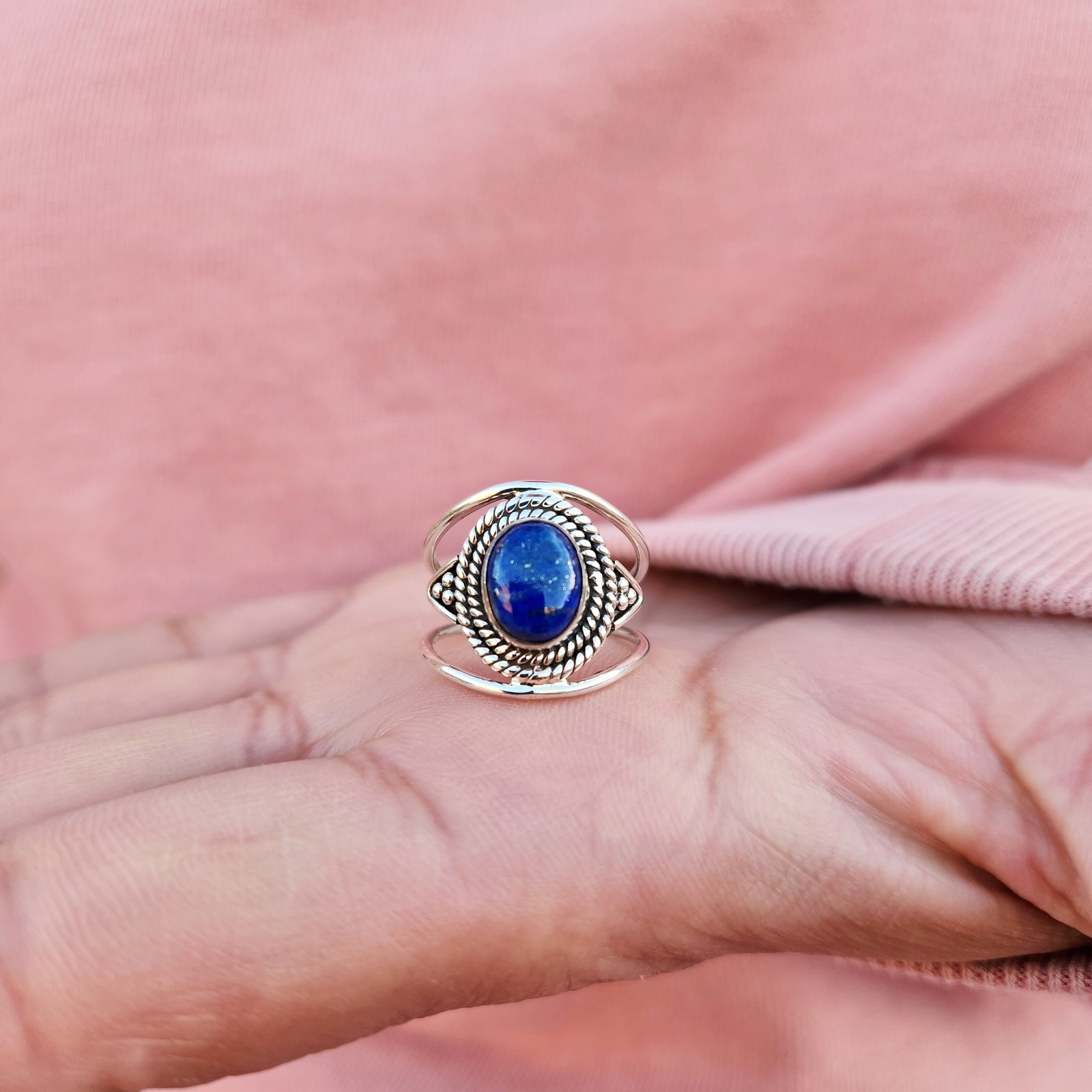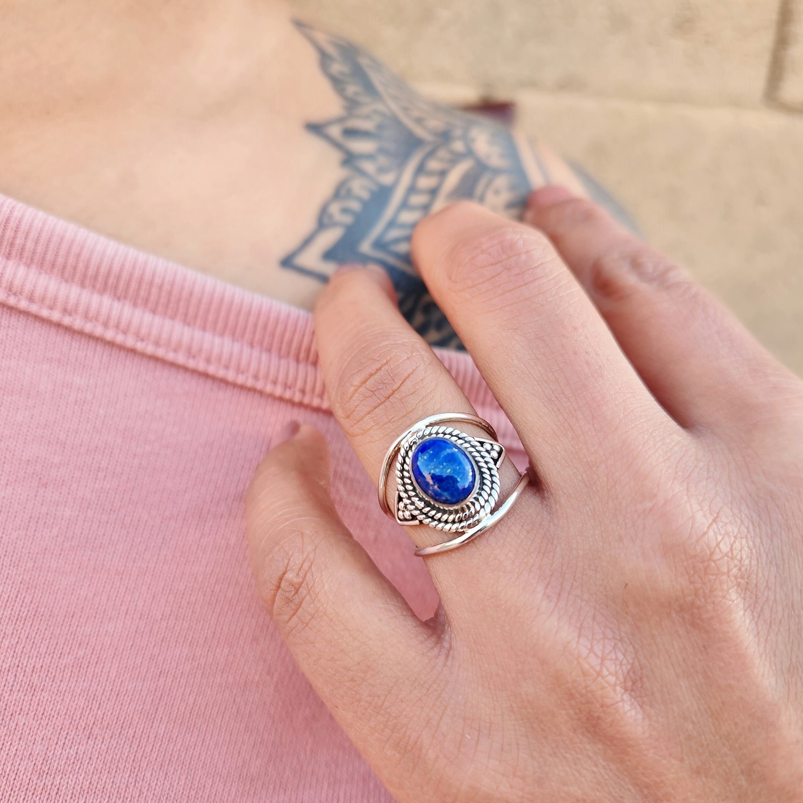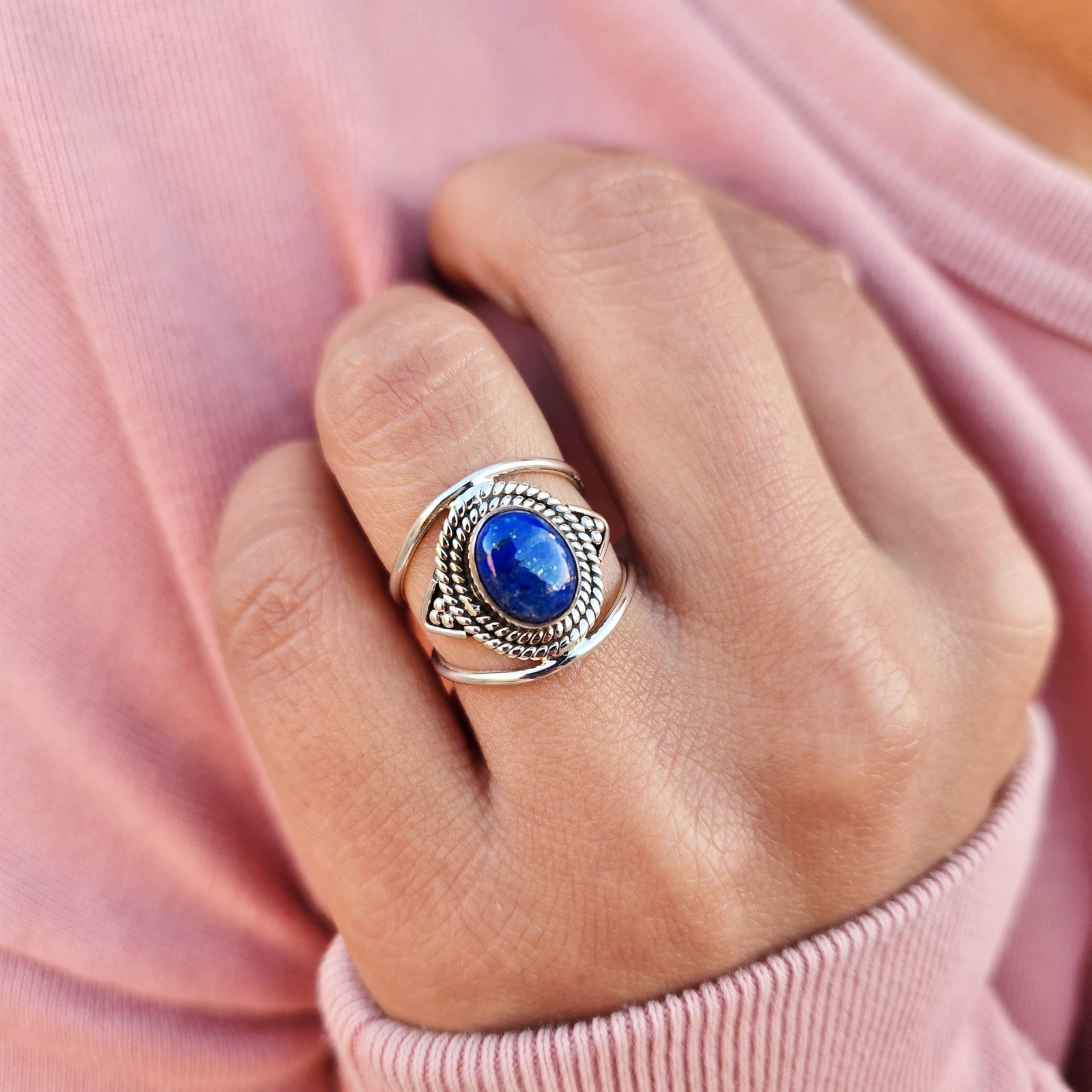 Genuine Lapis Lazuli Ring 925 Sterling Silver Statement Ring Lapis Gemstone Ring