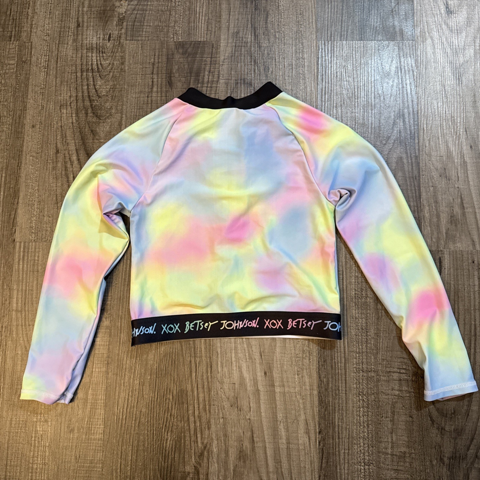 как выглядит Betsy Johnson Long Sleeve 1/4 Zip Tie Dye Swimsuit Top Girls Sz 10 фото