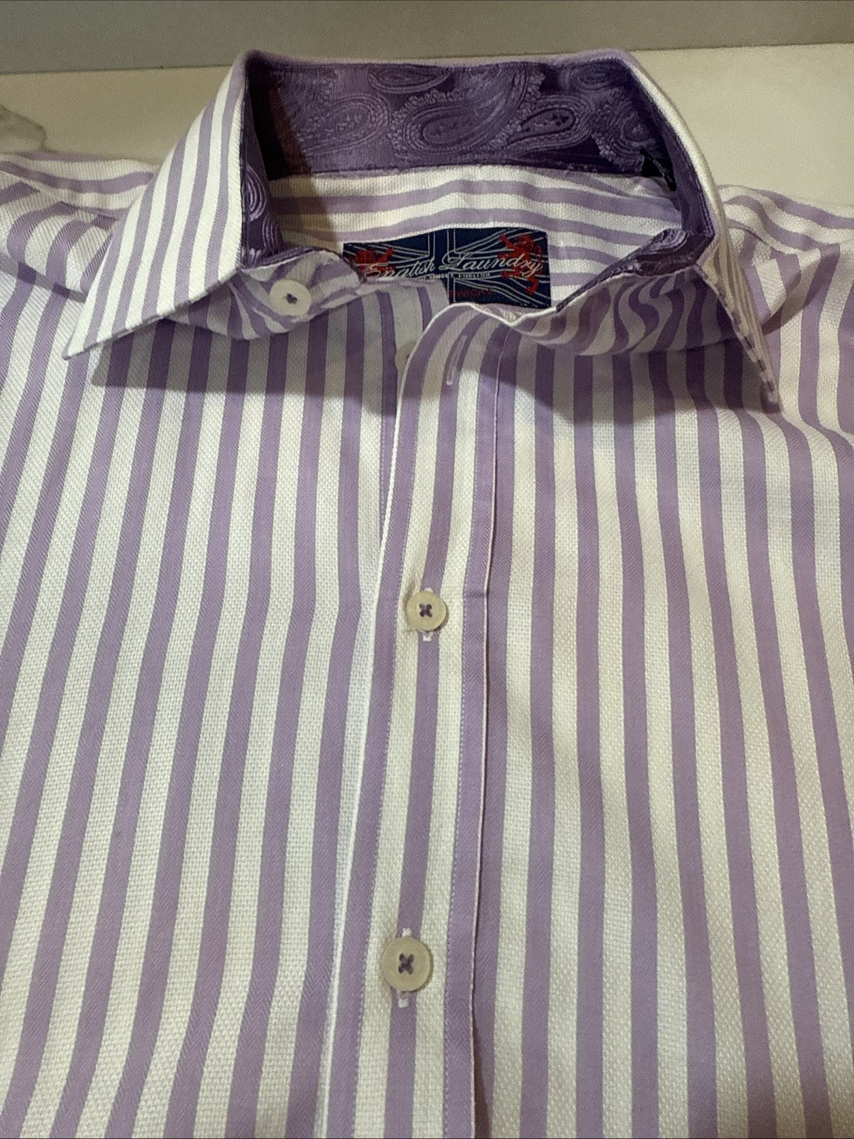 как выглядит English Laundry Mens Purple Striped Button-up Dress Shirt-Size 16 34/35 фото