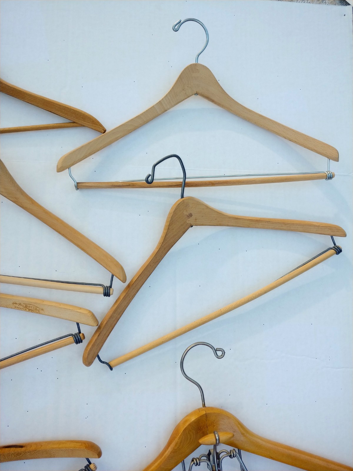 как выглядит Mixed Lot 9 Vintage Wooden Suit Pants Hangers Setwell/Dept Store Locking Bars фото