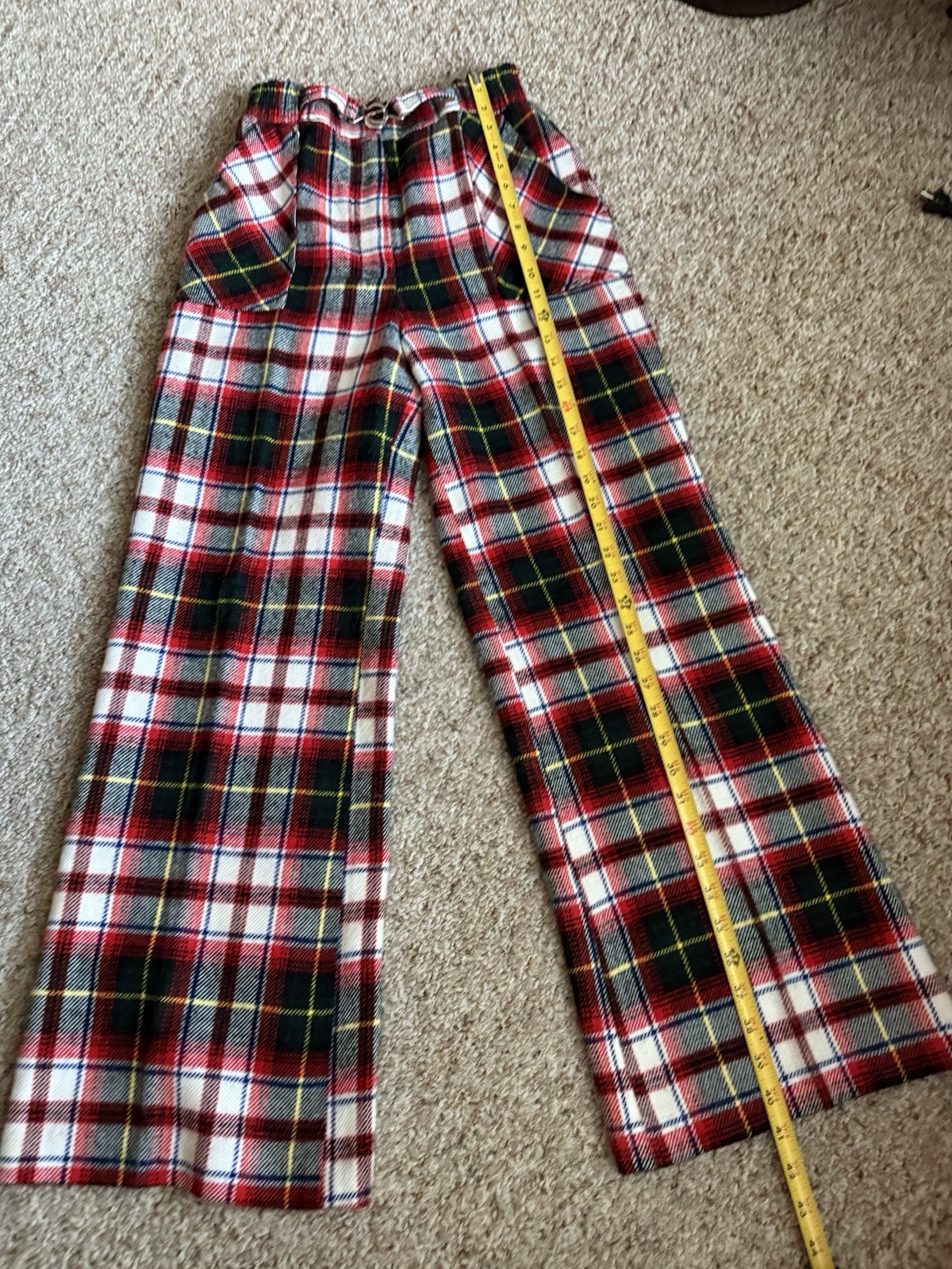 как выглядит Vintage 70s Kmart Plaid Pants Womens Christmas Flared Metal Latch Closure Med фото