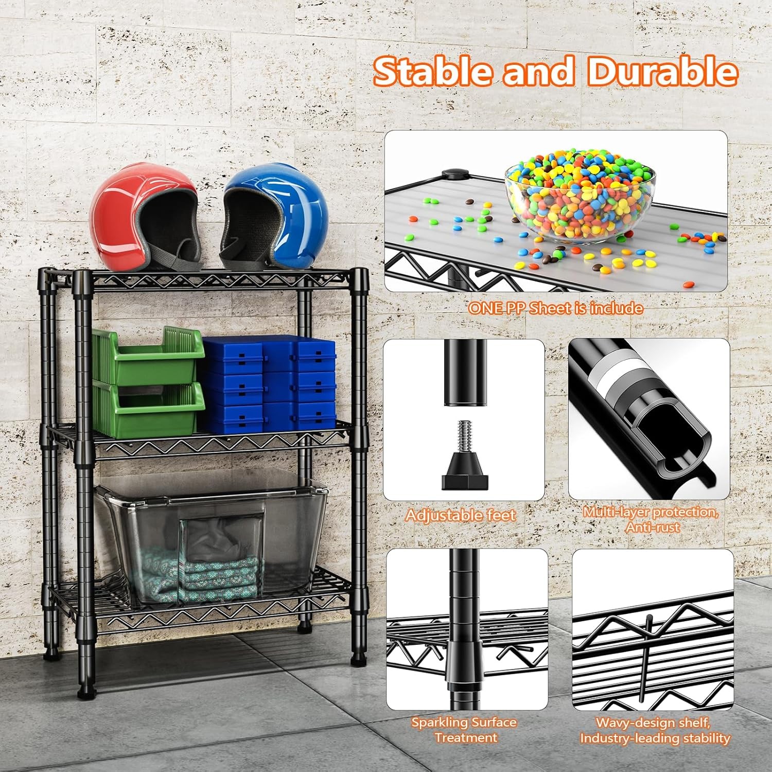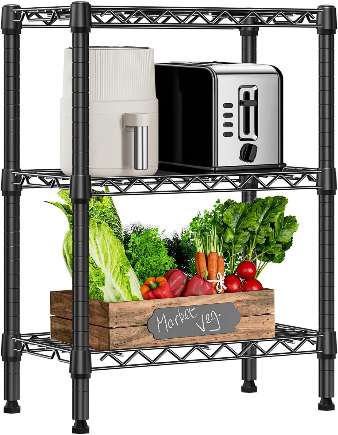 3 Tier Metal Wire Shelves Storage Kitchen Pantry Shelving Units Black Racks 29