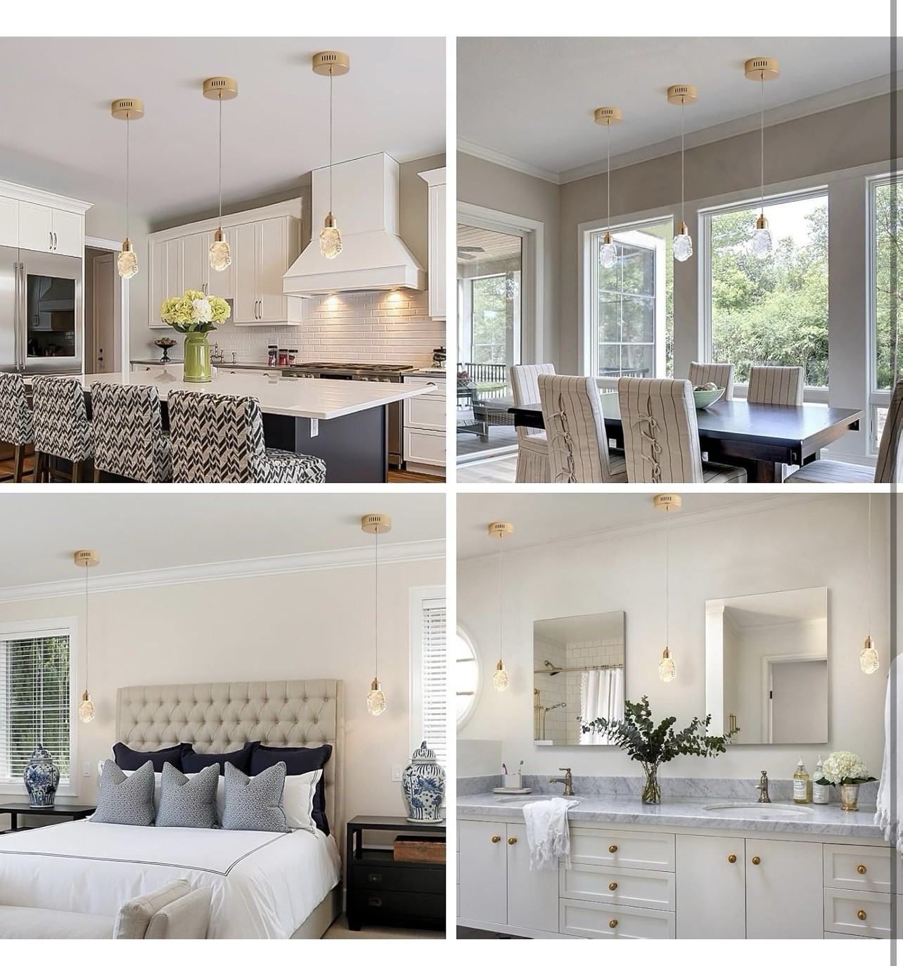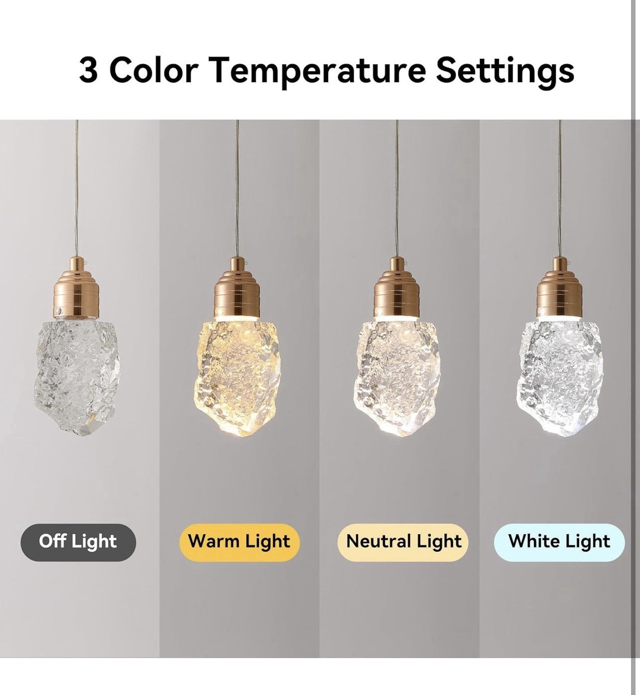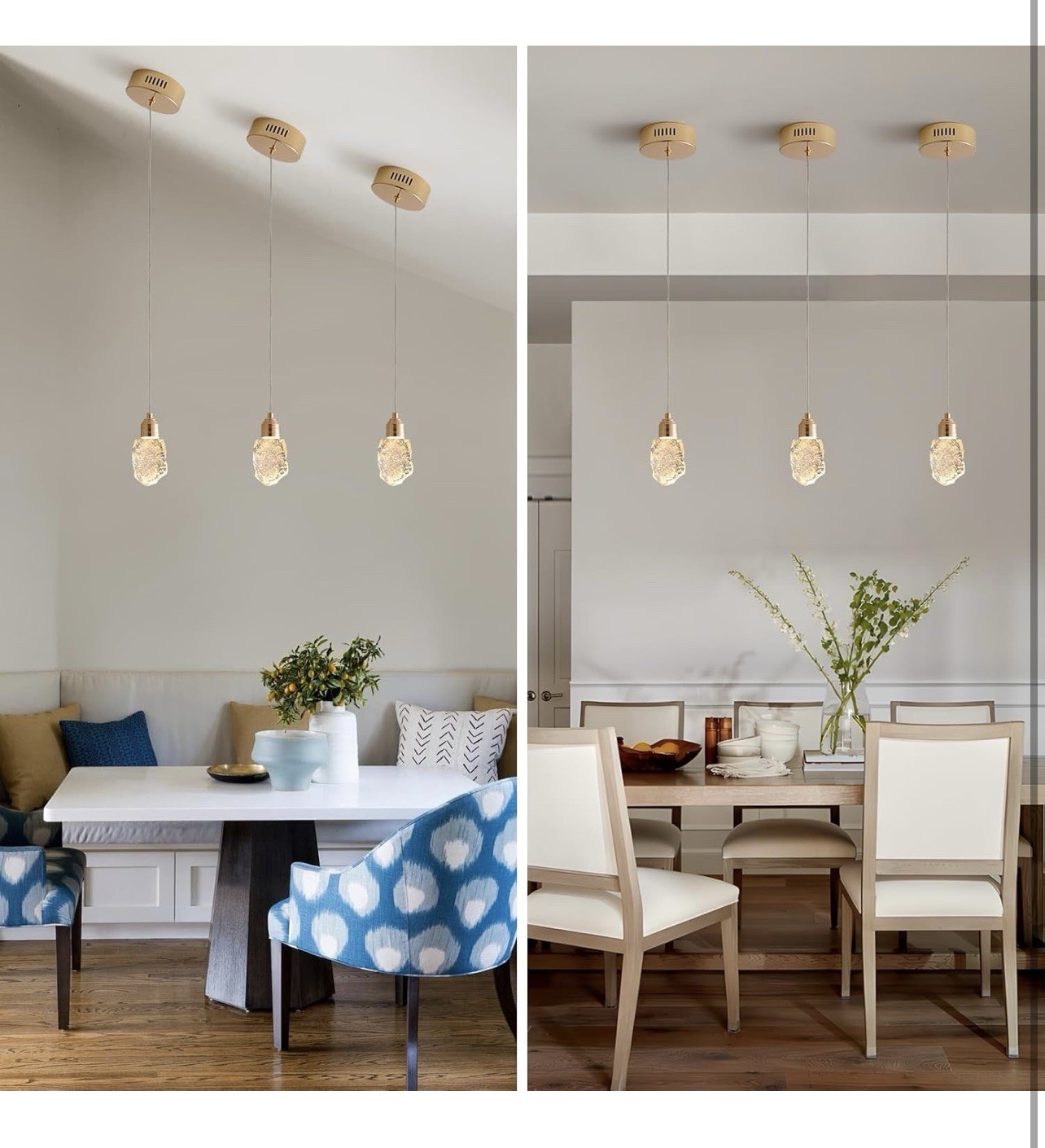 3-Pack Modern Crystal Pendant Lights for Kitchen Island with 3 Color Temps