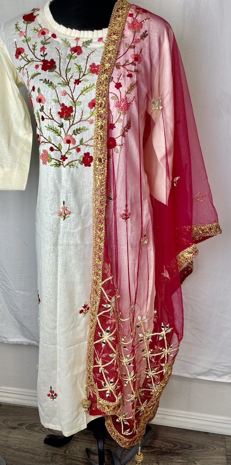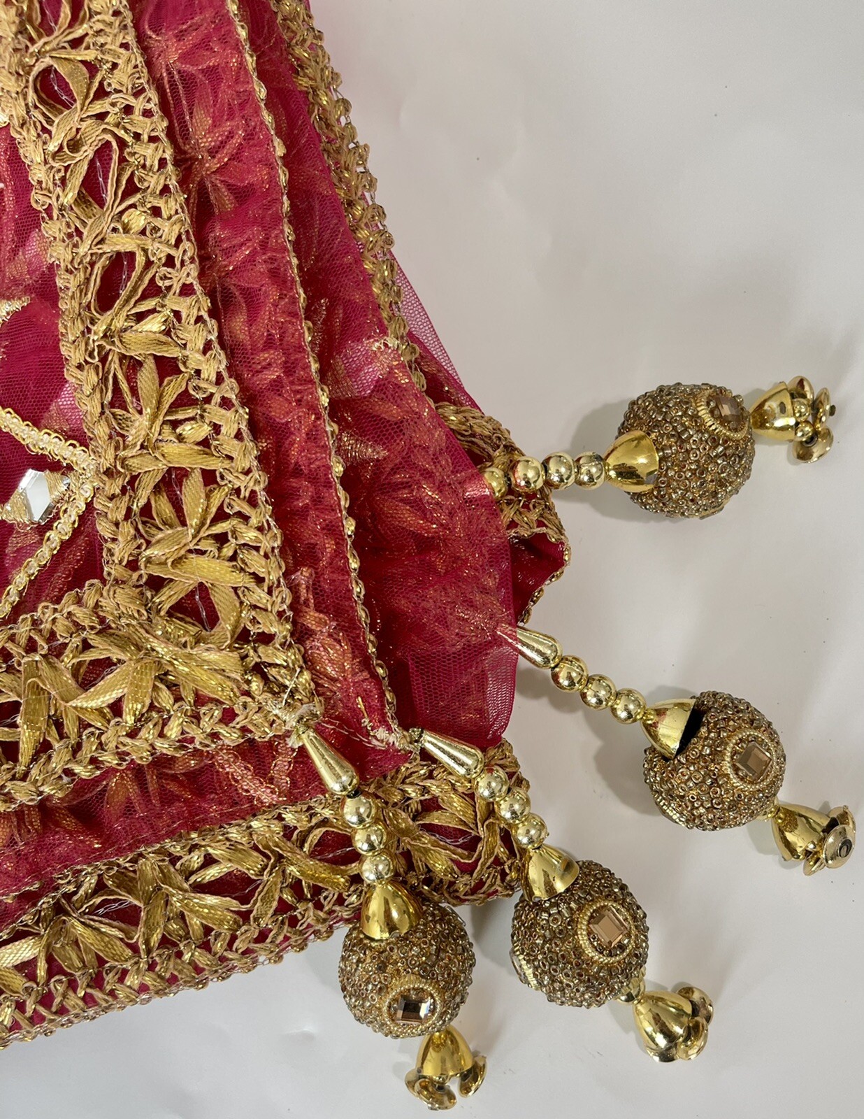 Indian Pakistani Sheer Net Mirror Red Border Wrap Dupatta Scarf Shawl Long