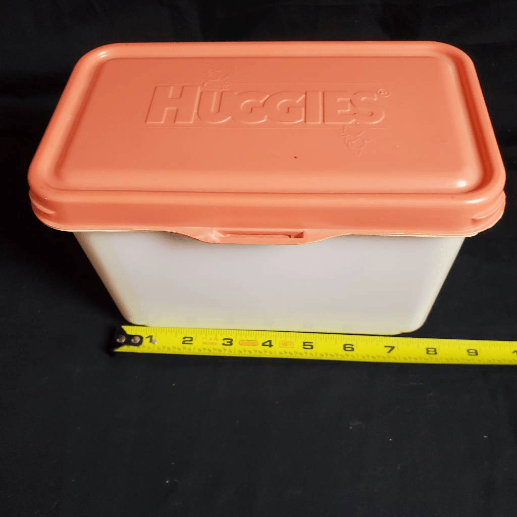 как выглядит Vintage Huggies Natural Care Baby Wipes Container Pink Lid 1992 фото