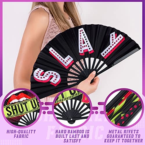 6 Pcs Large Hand Fan Rave Iconic Shade Bye Folding Bamboo Handheld Classic