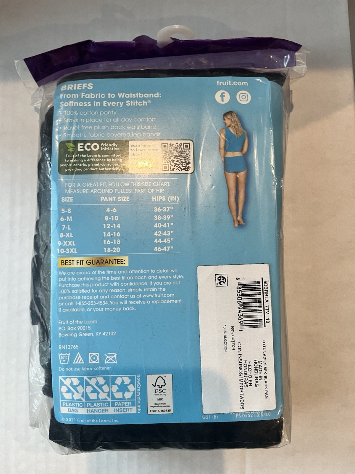 как выглядит New Fruit Of The Loom Black Cotton Briefs Panties Size 10 3XL 6 Pack фото