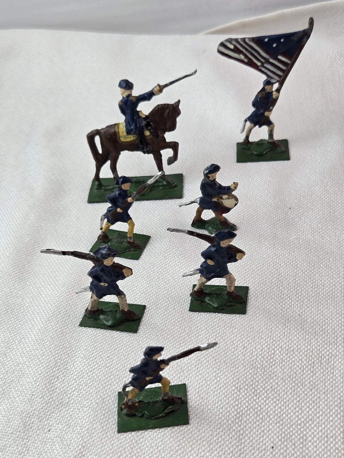 как выглядит Vintage Lot of 17 Cast Lead Flat Toy Soldiers Painted - Horse Foot Soldiers фото
