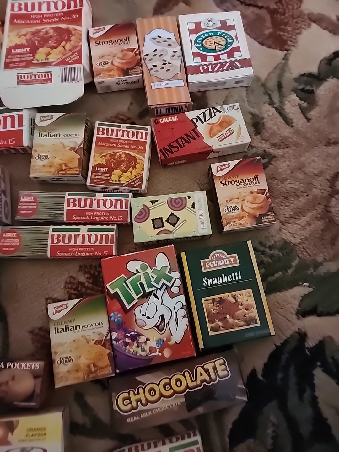 Huge Lot Vtg Play Kitchen Pots Utensils Plates Food Plaatic Tin Cardboard More