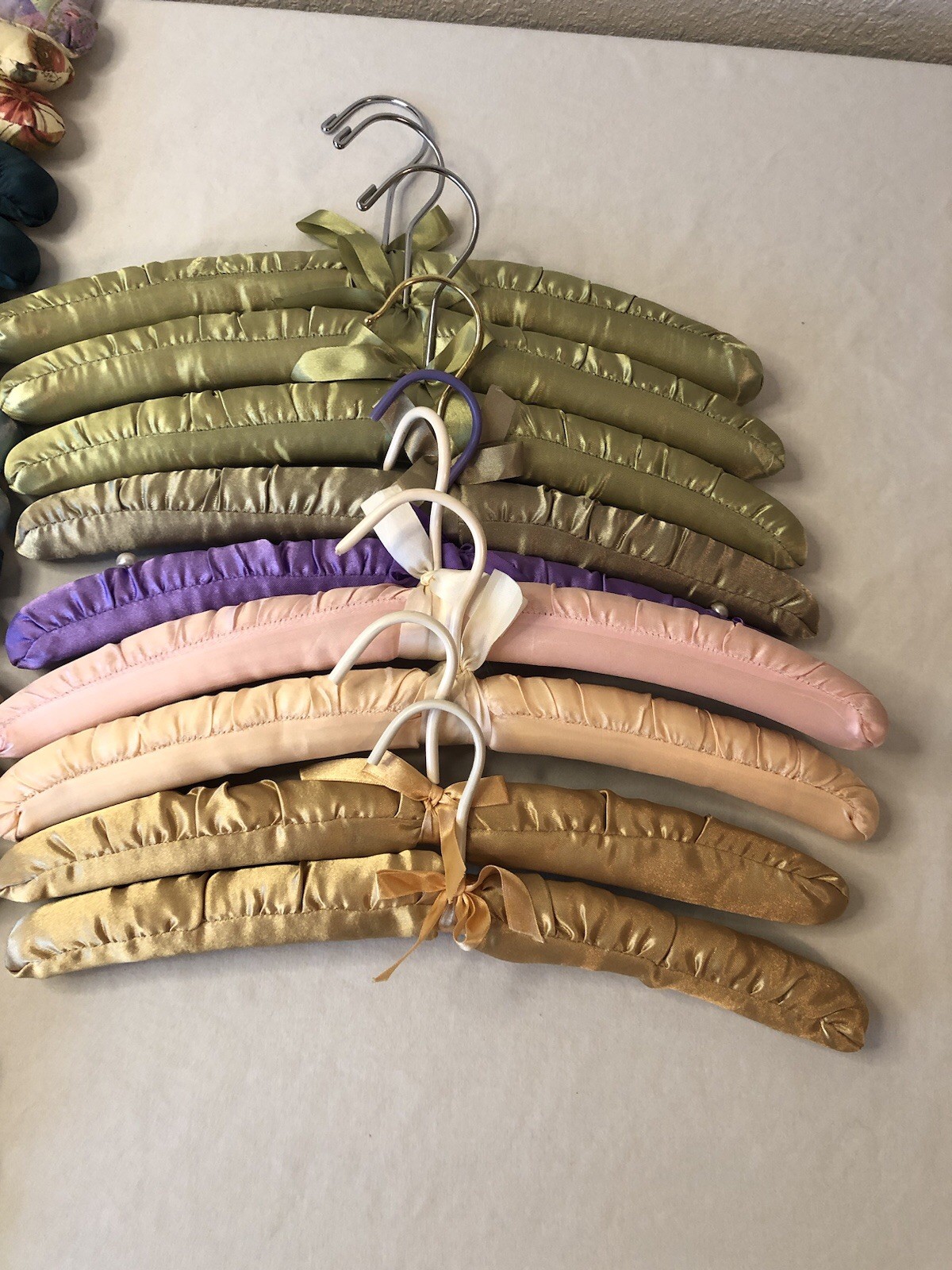 как выглядит Vintage Lingerie Fabric Padded Covered Hangers LOT 29 - Various Patterns/styles фото