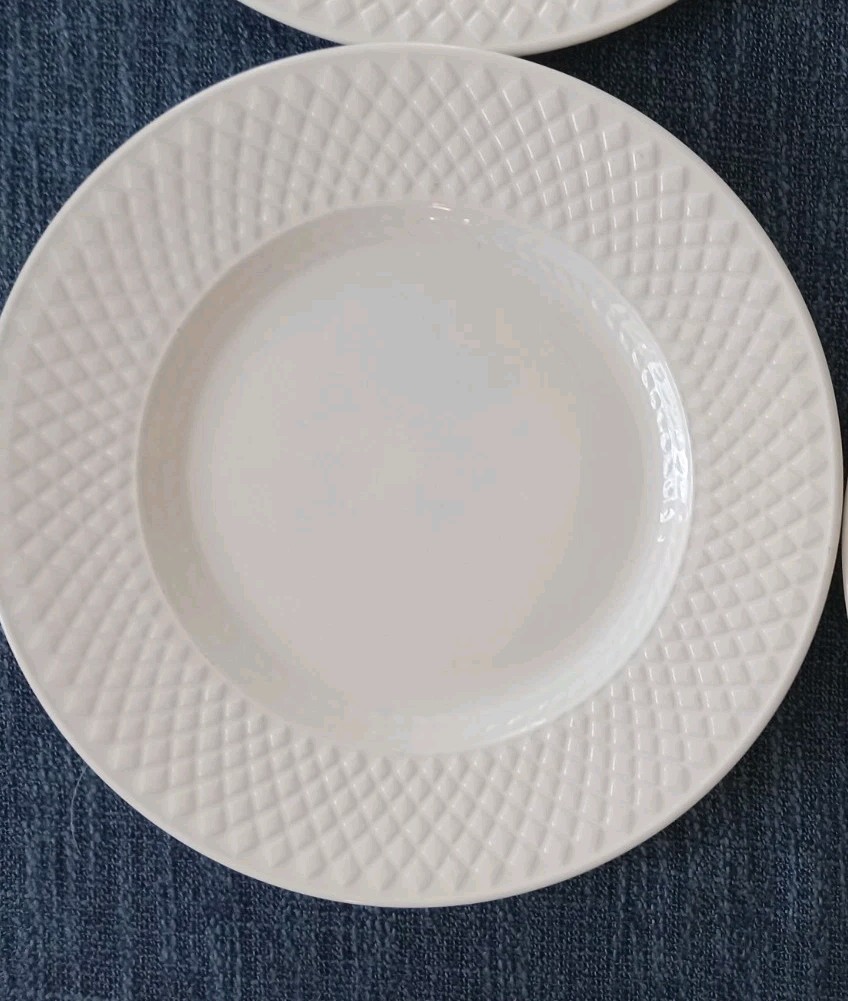 как выглядит 6 SPODE MANSARD WHITE EMBOSSED SALAD PLATES EUC NO BLEMISHES фото