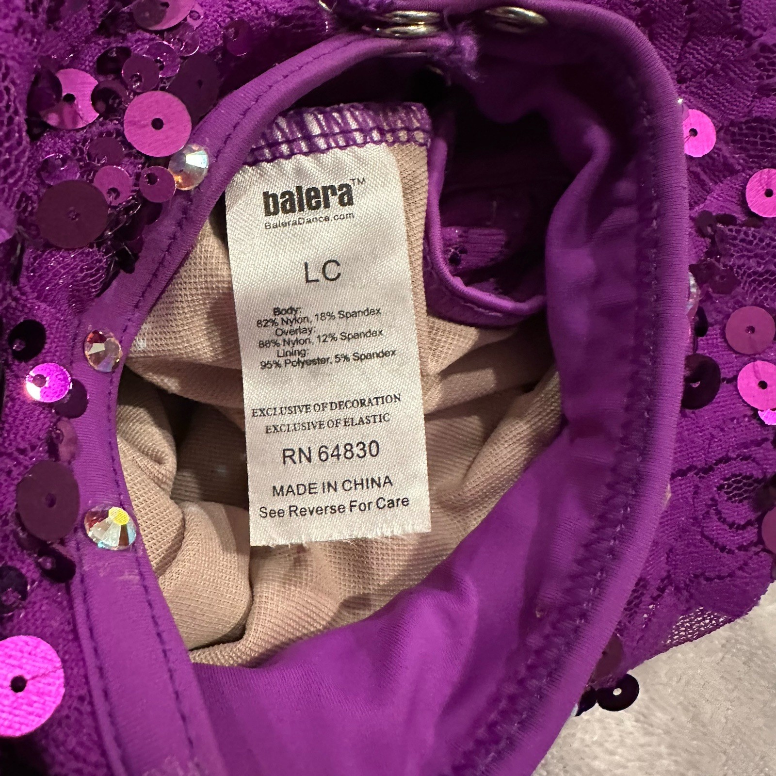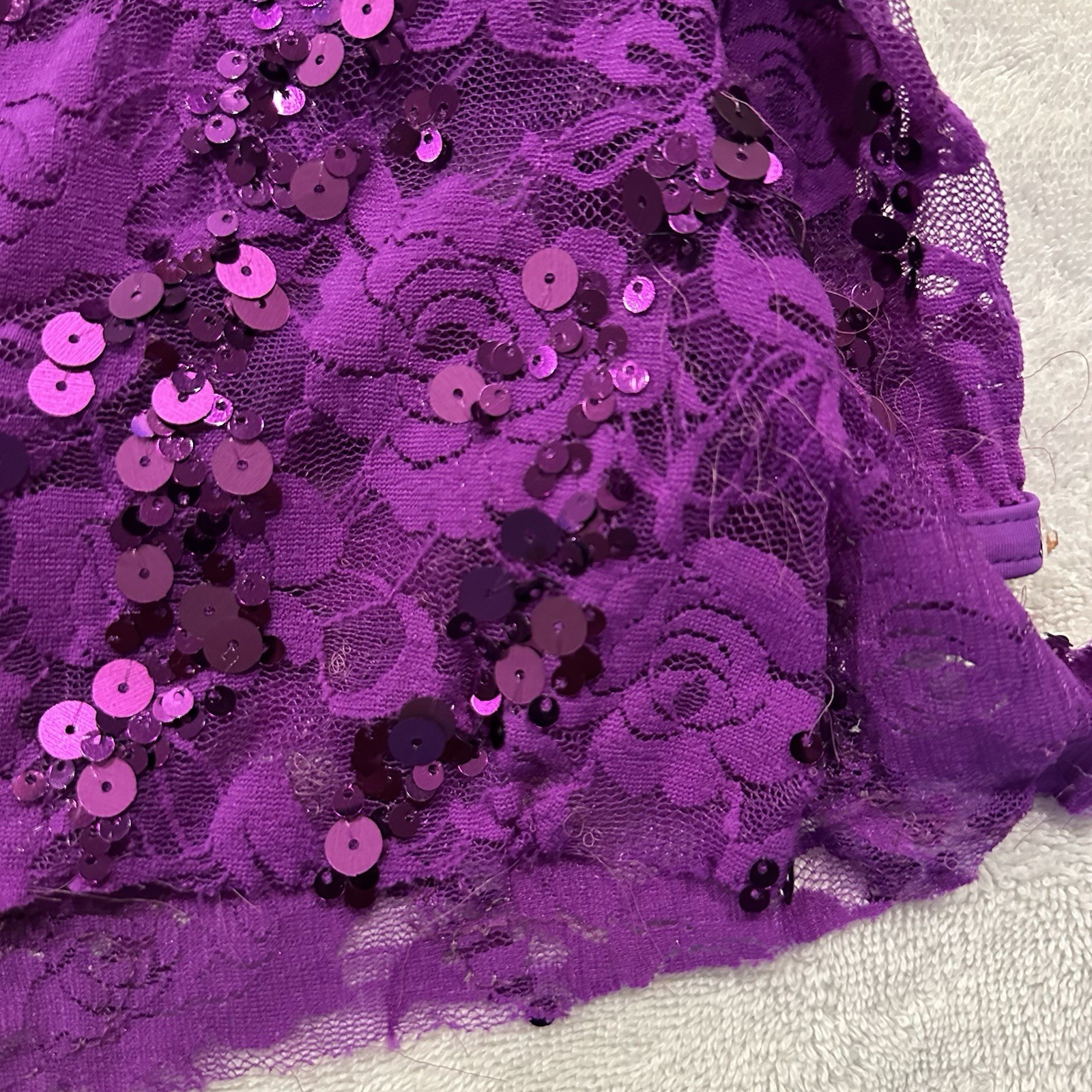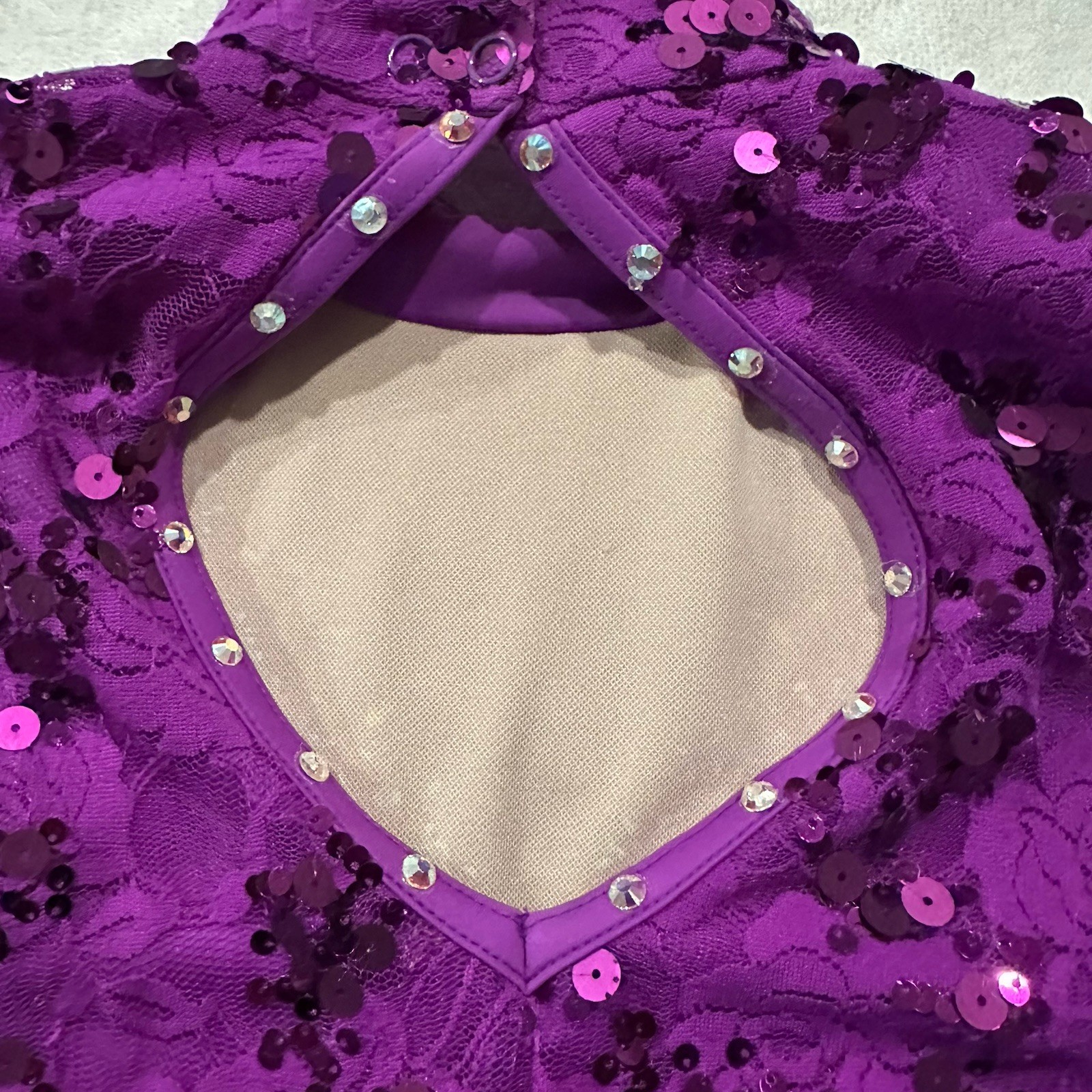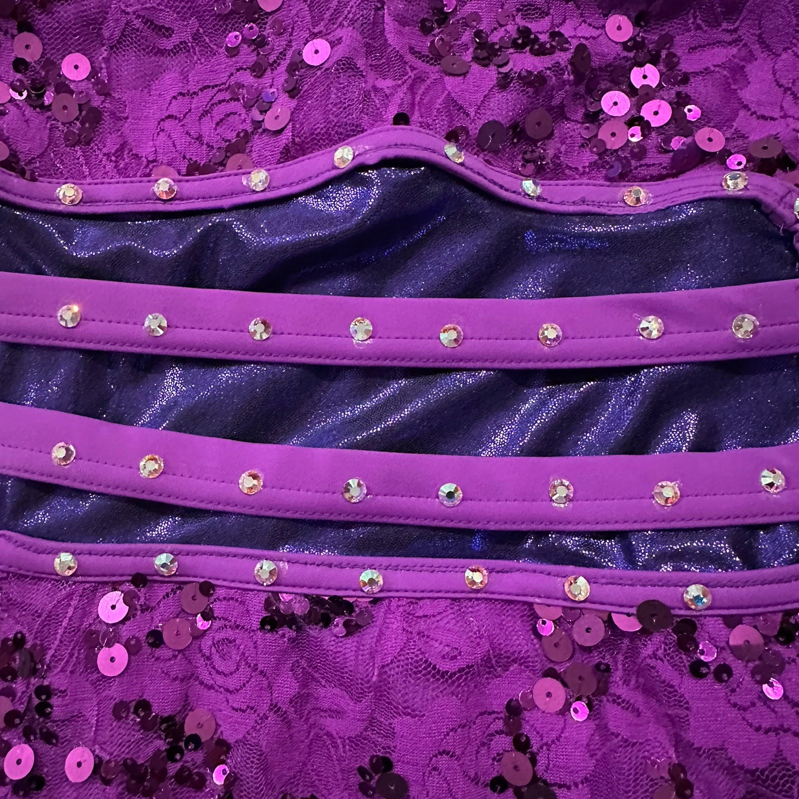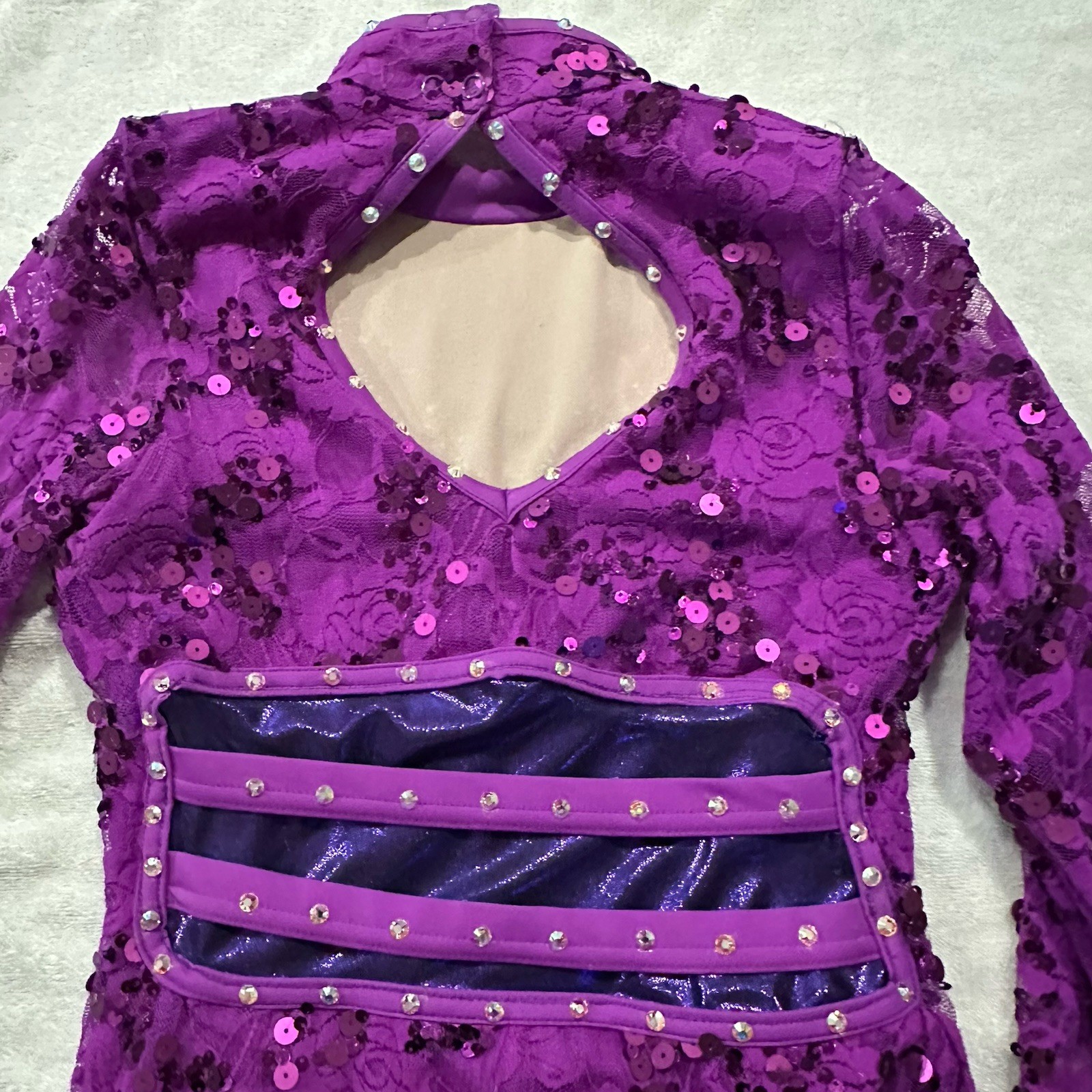 Balera Semi Custom Purple Streak Lace Mock Neck Dress Rhinestone Dance Costume