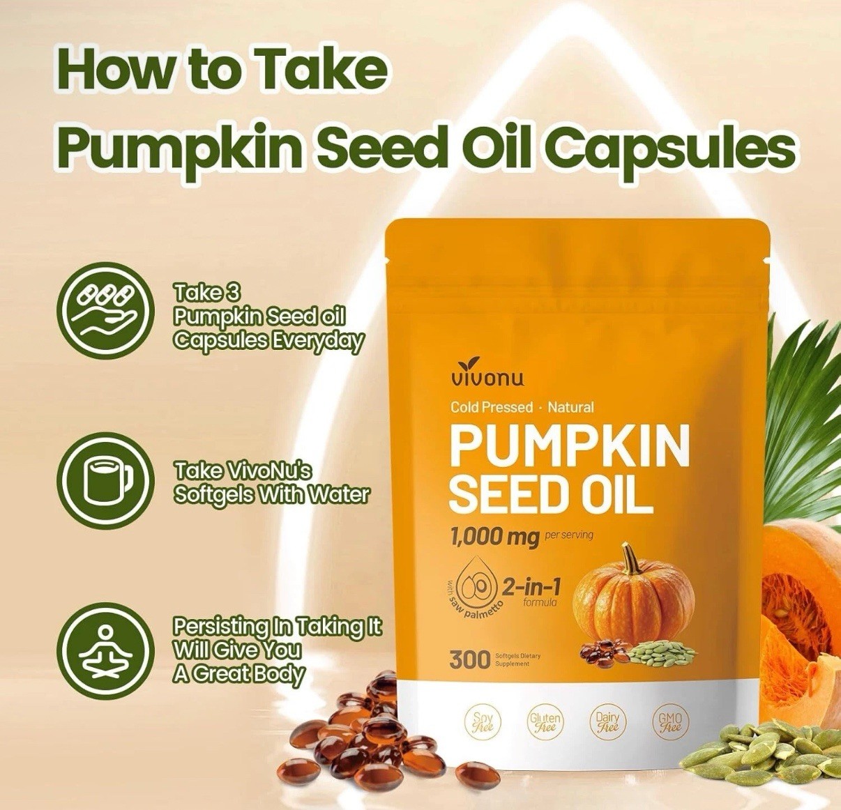 как выглядит 2 Pack Pumpkin Seed Oil with Saw Palmetto Capsules Cold Pressed, Pure Virgin Oil фото