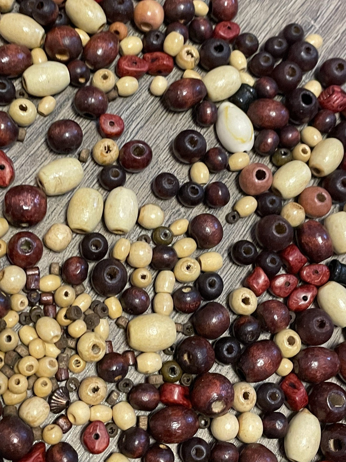 Vintage LG Assorted Wood Beads For Macrame Crafting Jewelry Making-Browns/Beige