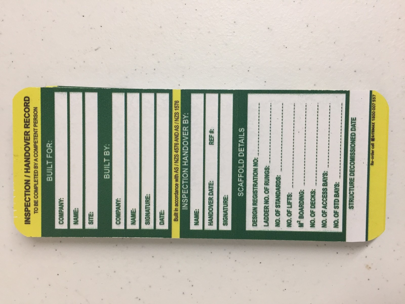 Lot of 20 Sitemax Scafftag Scaffold Tag Inspection Vinyl 1800 007 557