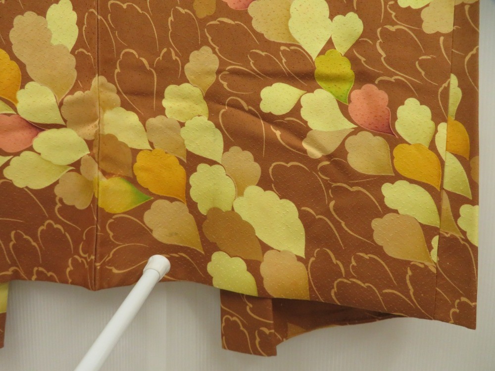 5501T07z540 Vintage Japanese Kimono Silk HAORI Leaf Light brown