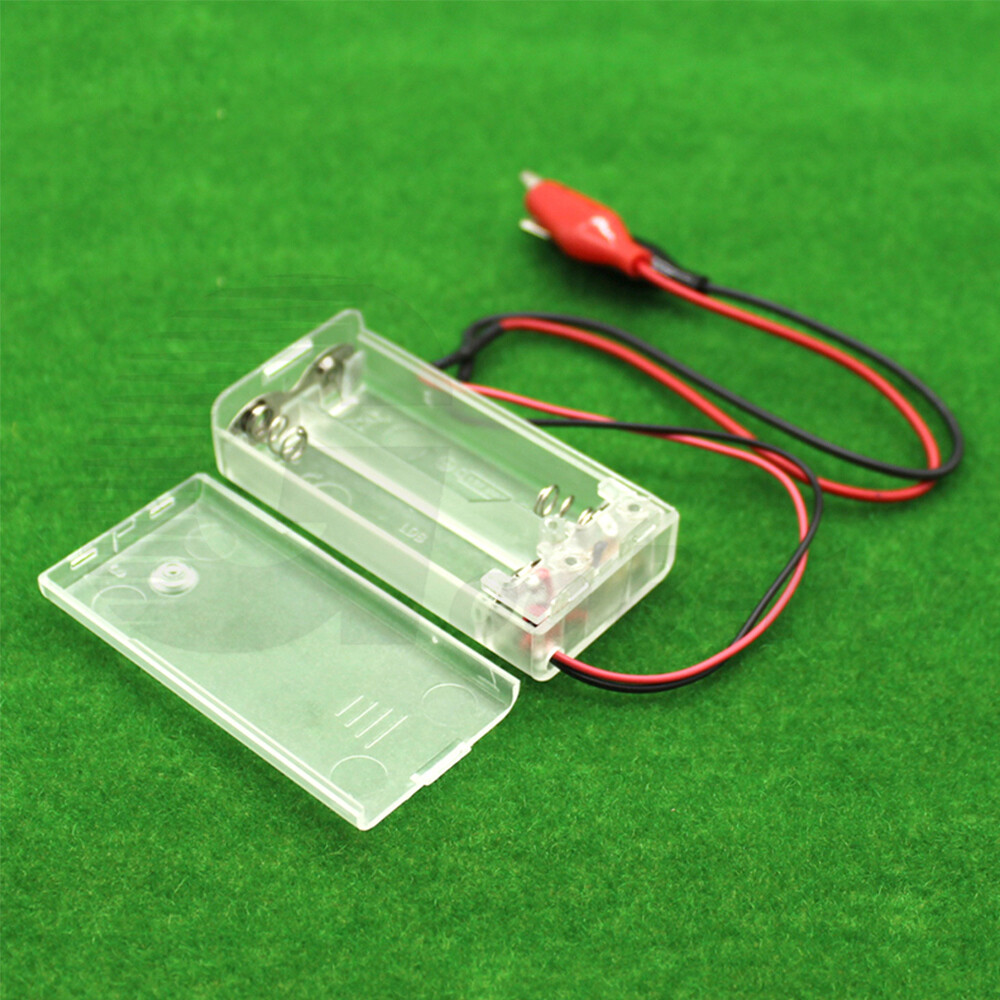 2 Slot AA Battery Holder Case Enclosed Box with Crocodile Clip Test Wire Switch