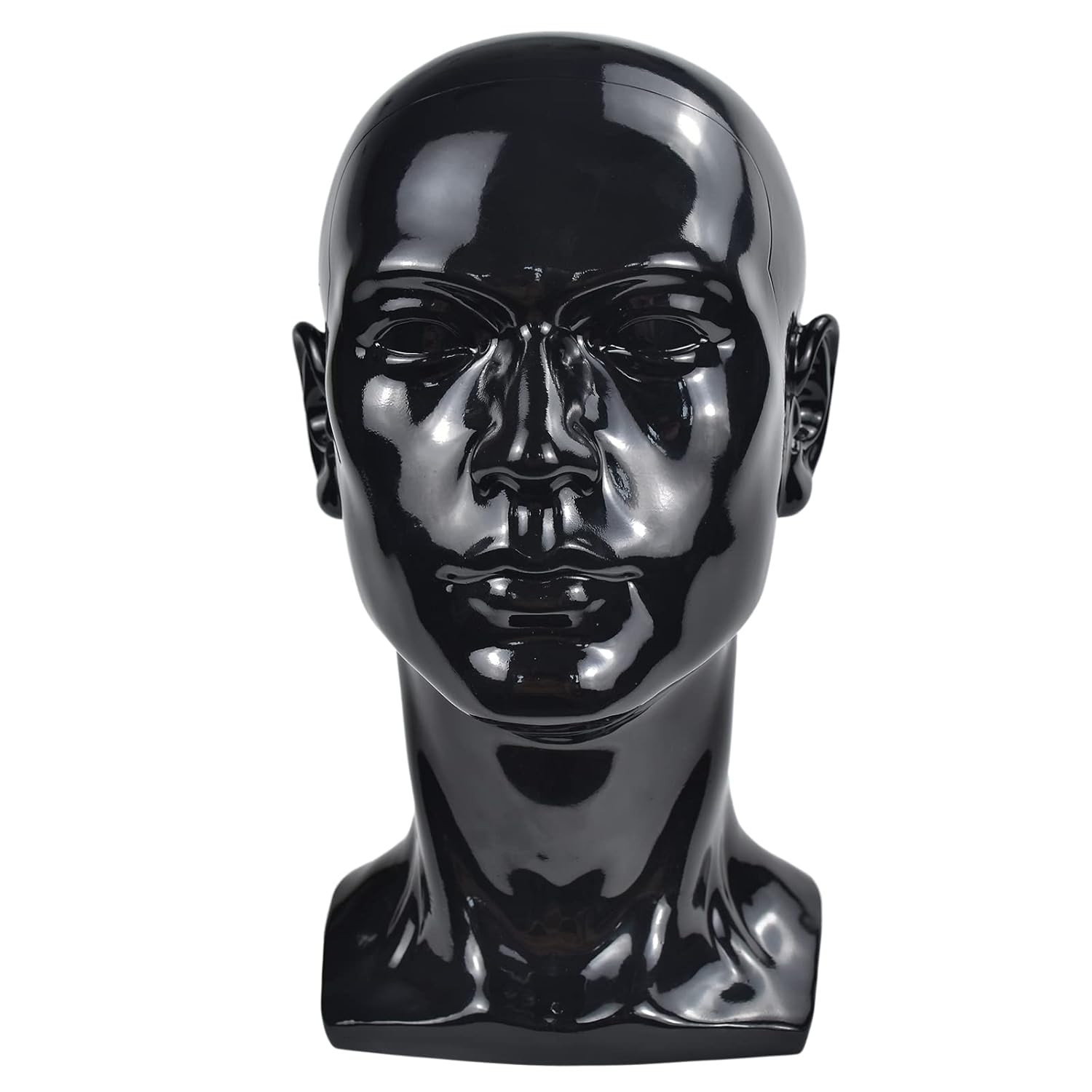 PVC Mannequin Head Black Male Manikin Dummy Stand Model Display Hat Scarf Wigs H
