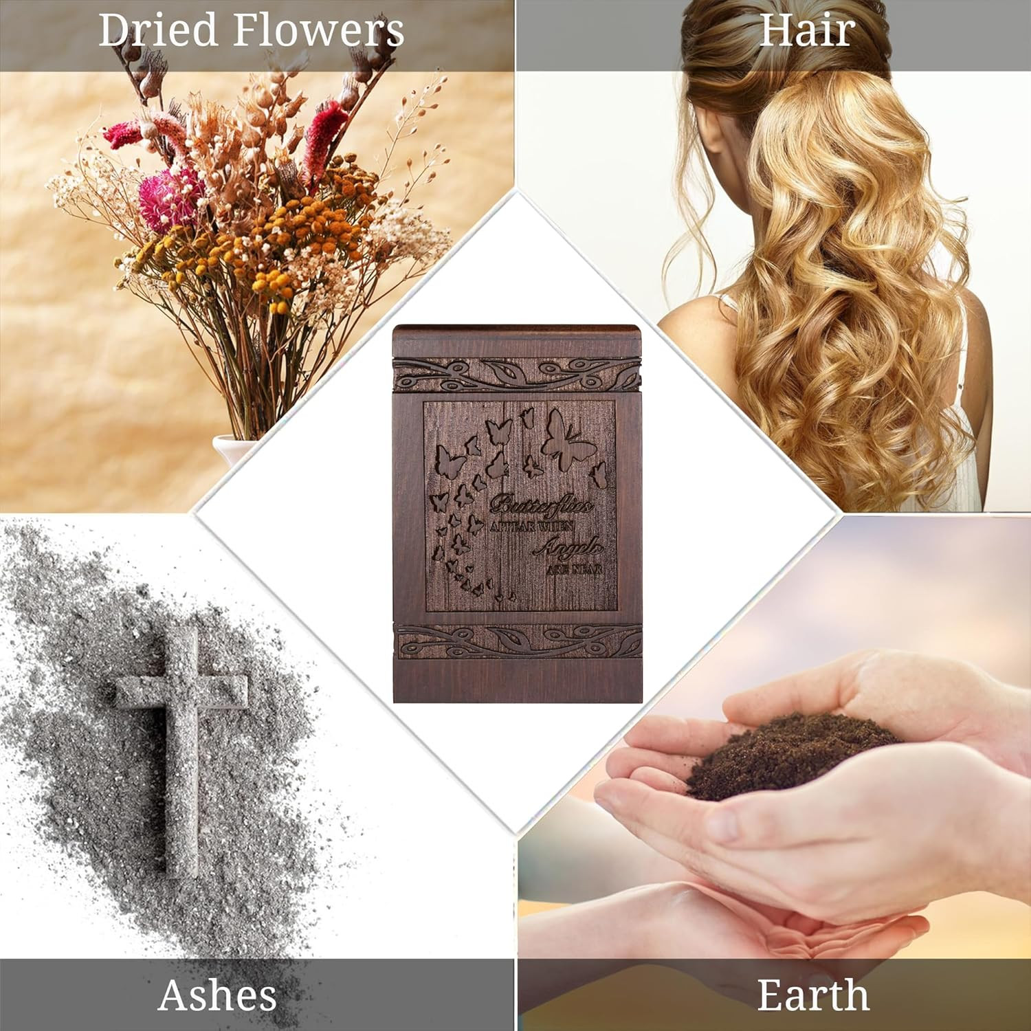 • Cremation Urns for Human Ashes Adult Male Female, Wooden Carved Butterfly Urns B