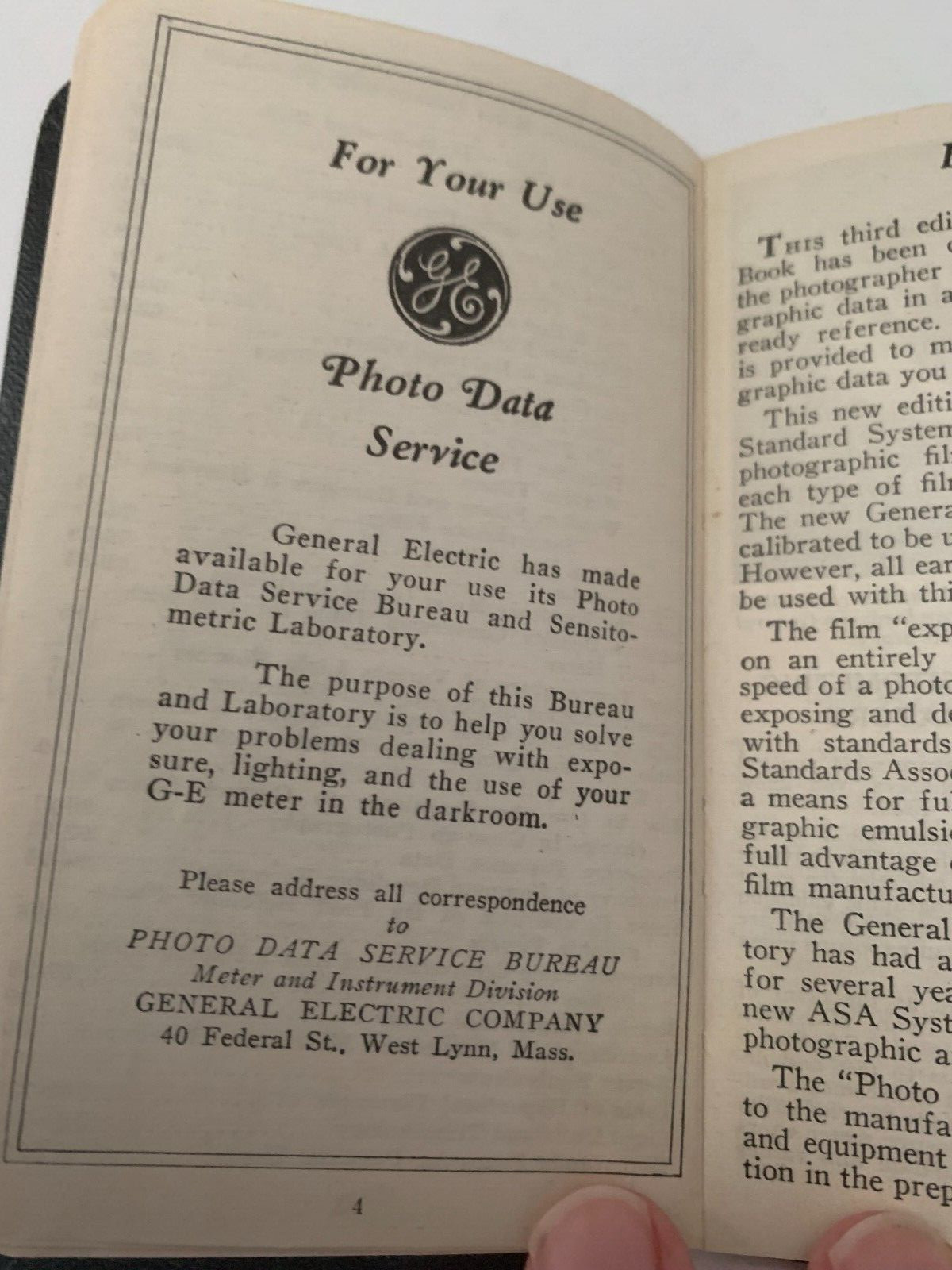 GE Photo Data Book 1946 W/ Repair Instructions Card Vintage