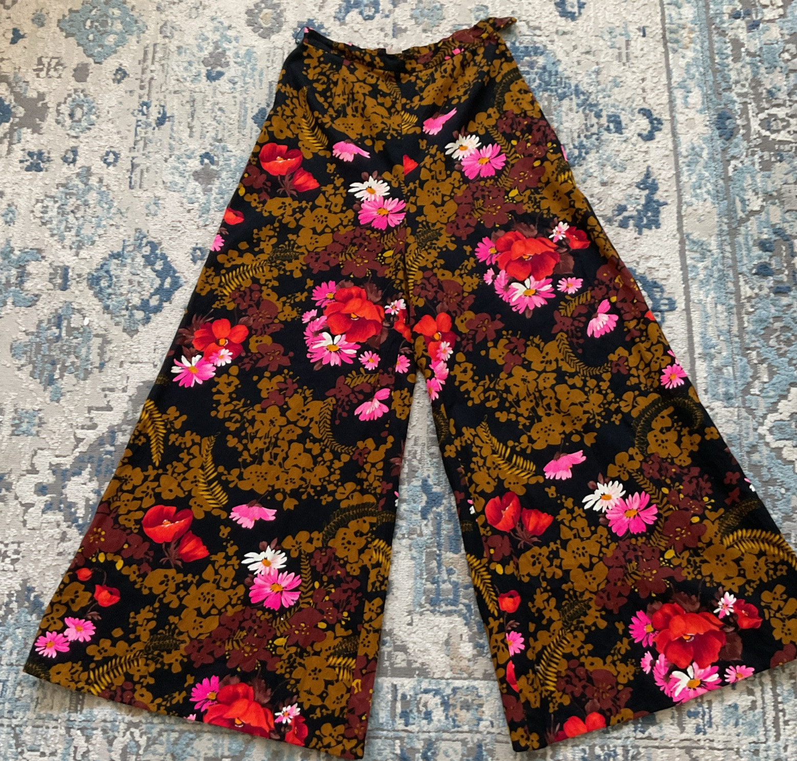 Vintage 60s70s Floral High Waisted Wide Leg Pants Groovy Hippie Boho