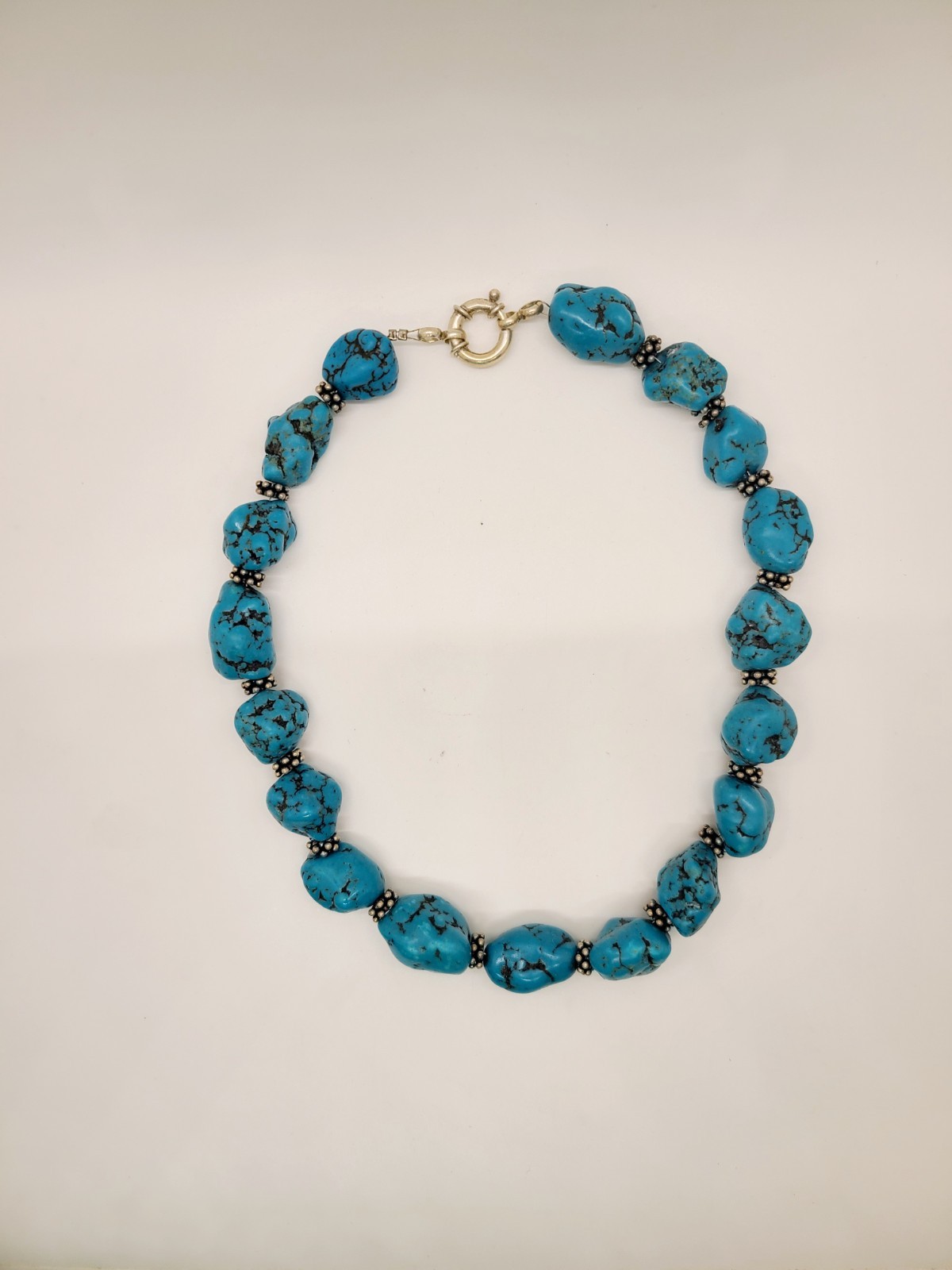 Handcrafted Chunky Faux Turquoise Choker Bracelet Earrings Set