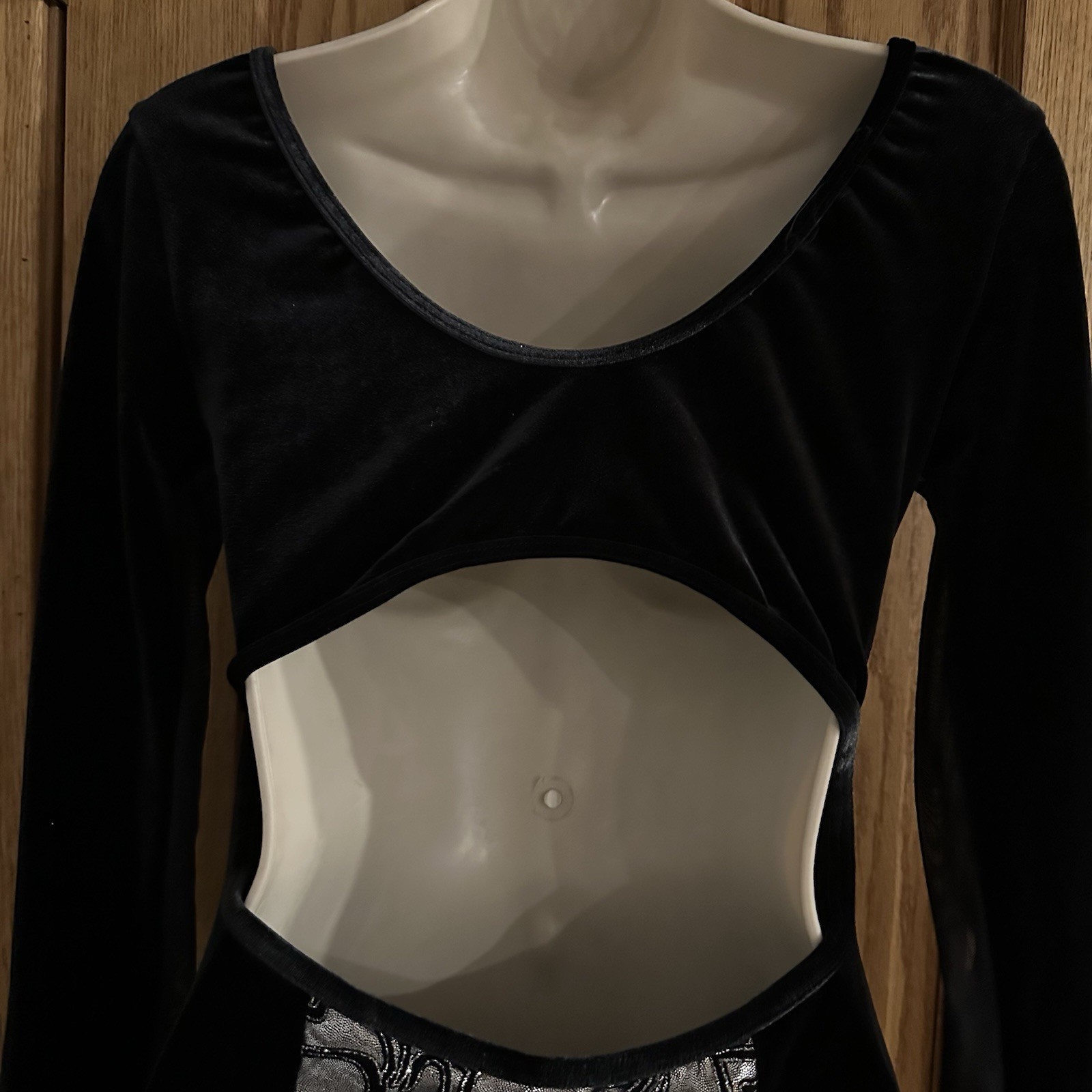 Weissman Flocked Glitter Black Silver Biketard Dance Costume 11065 MA