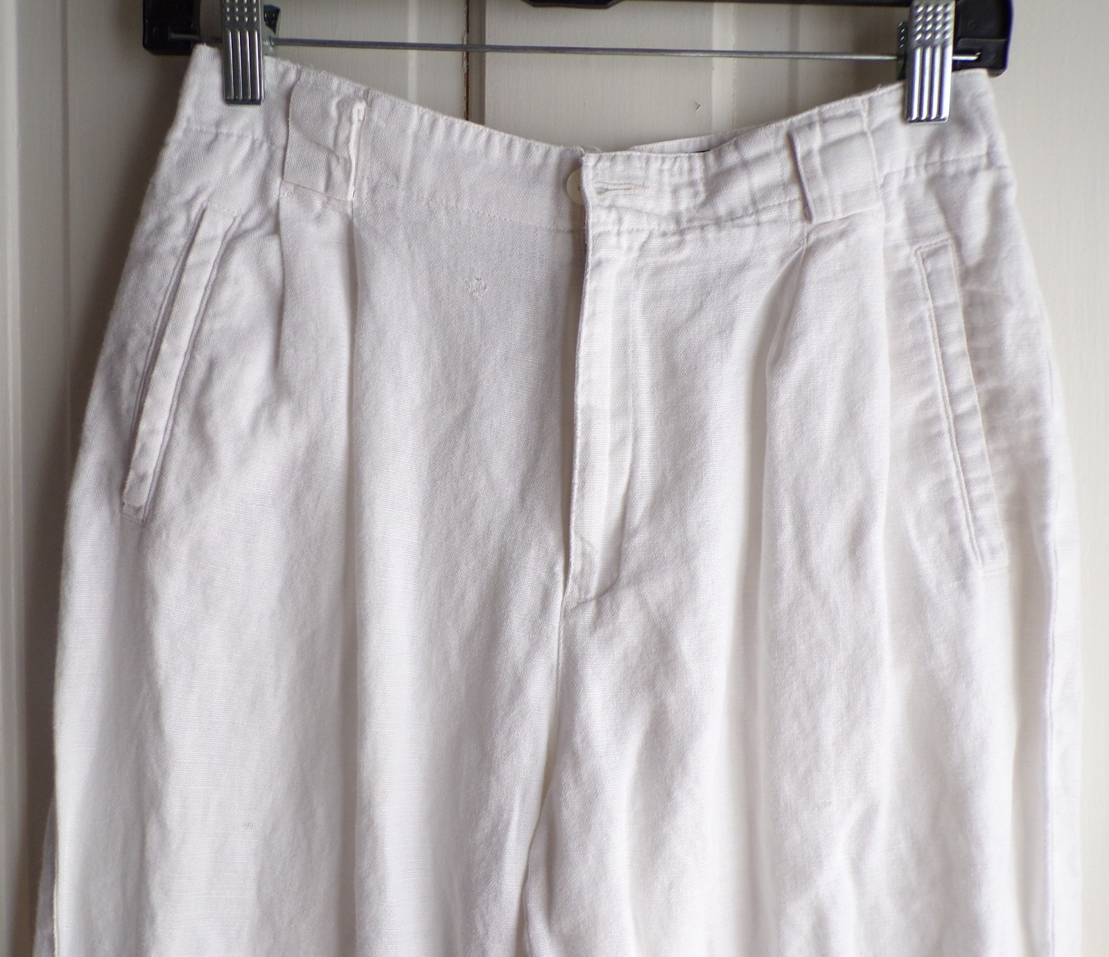 как выглядит Vintage Liz Claiborne Size 8 White Linen Blend Pleated Front Tapered Leg 29.5 фото
