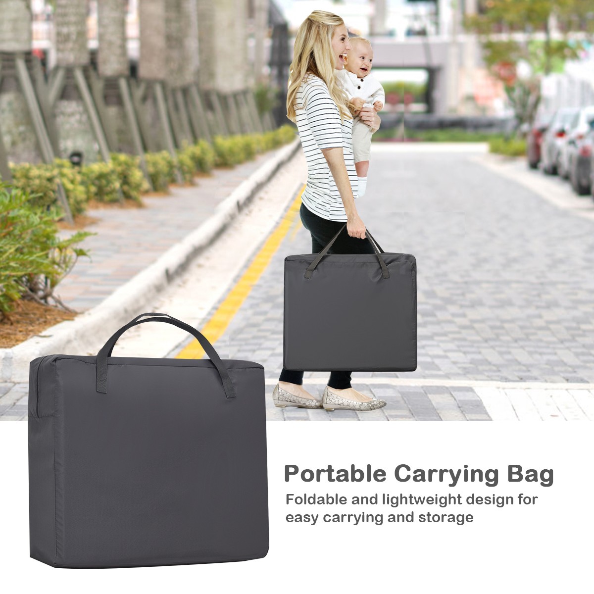 Baby Playpen Playard Foldable Lightweight Crib Sleeping w/Carry Bag Dark Gray