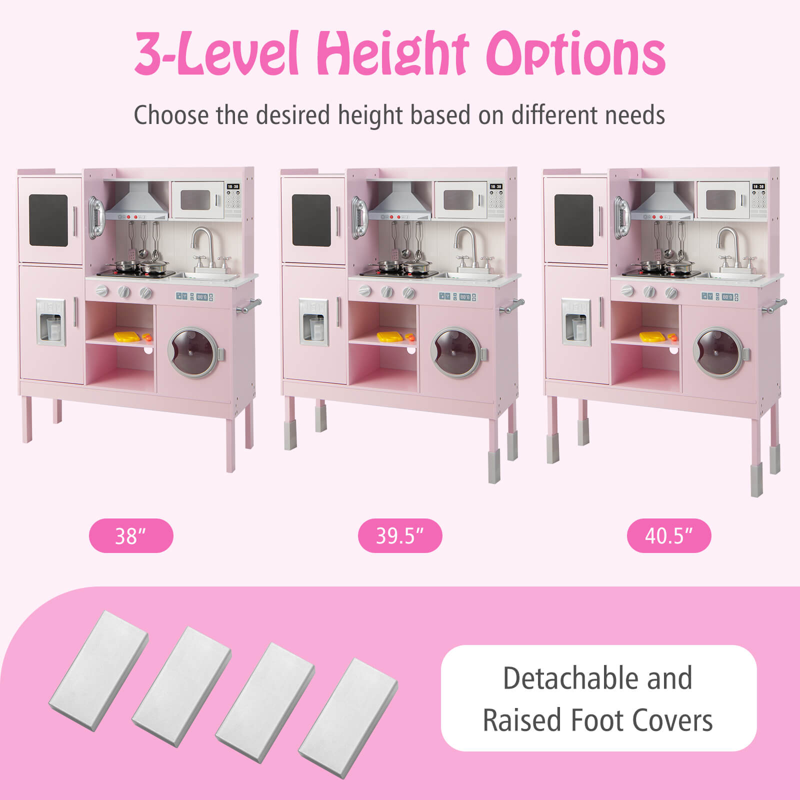 Kids Height Adjustable Pretend Kitchen Play Set Toddler Toy Wooden Chef w/Sounds