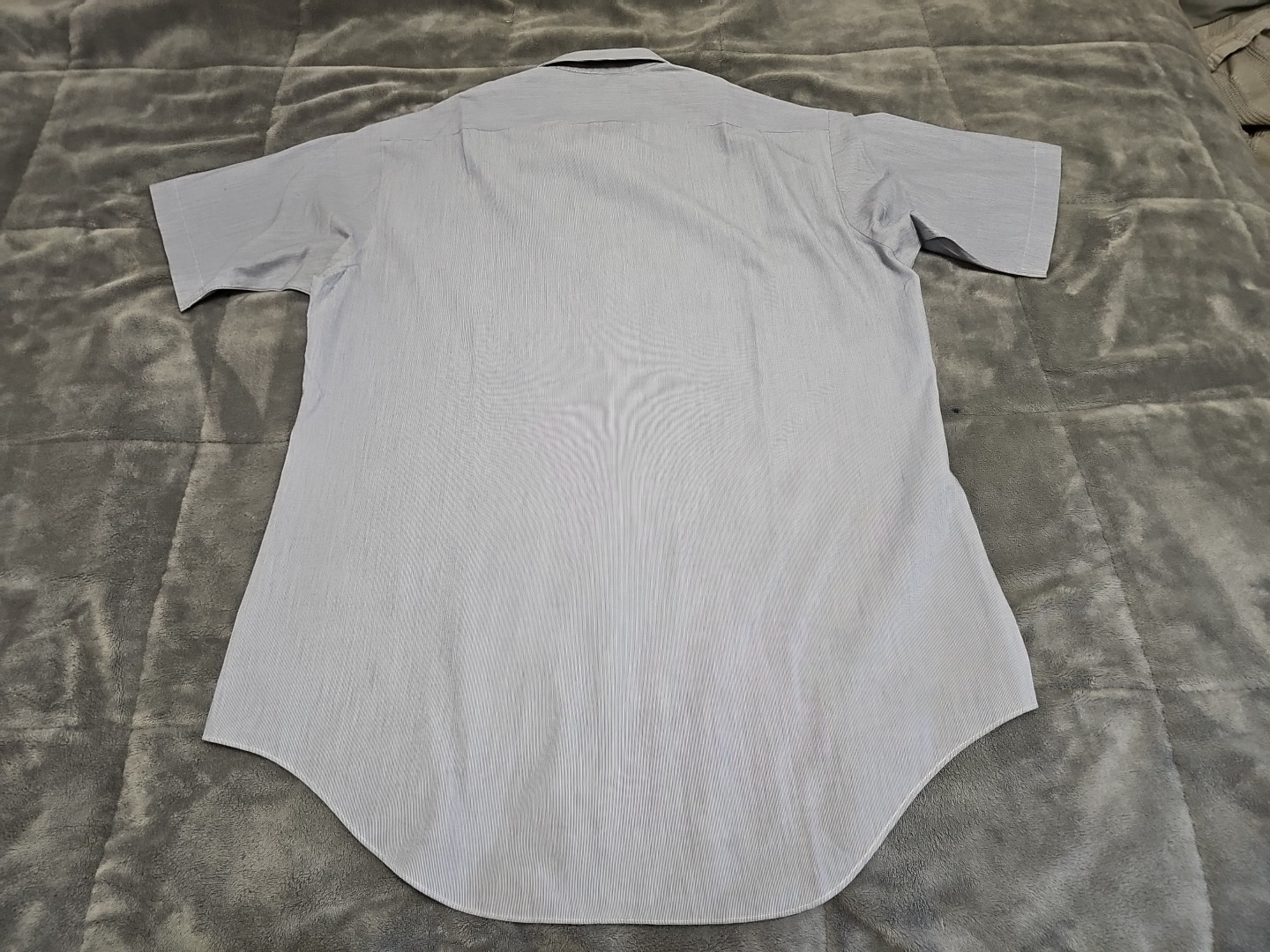 как выглядит Mariano Rubinacci Blue Hairline Striped Button-up Short Sleeve Shirt SZ XL фото