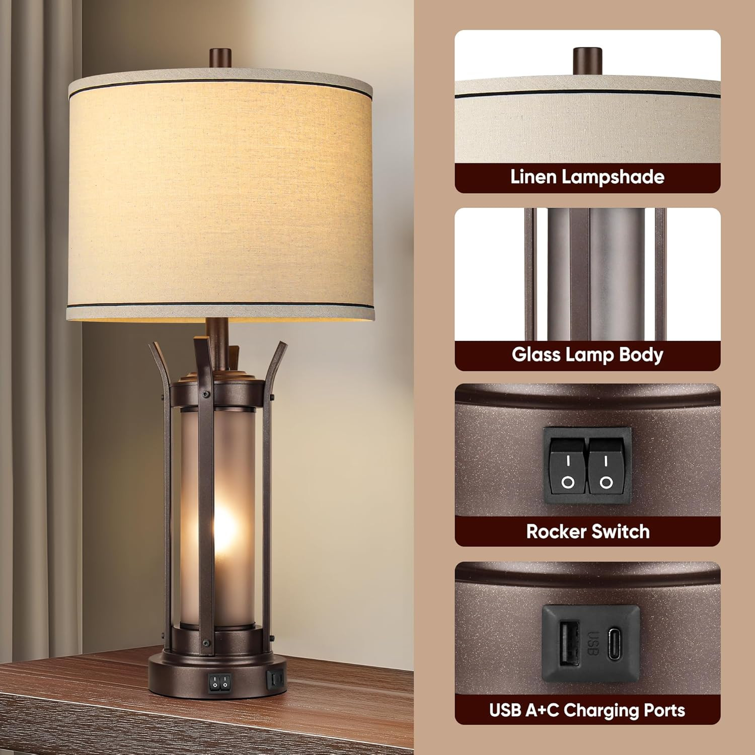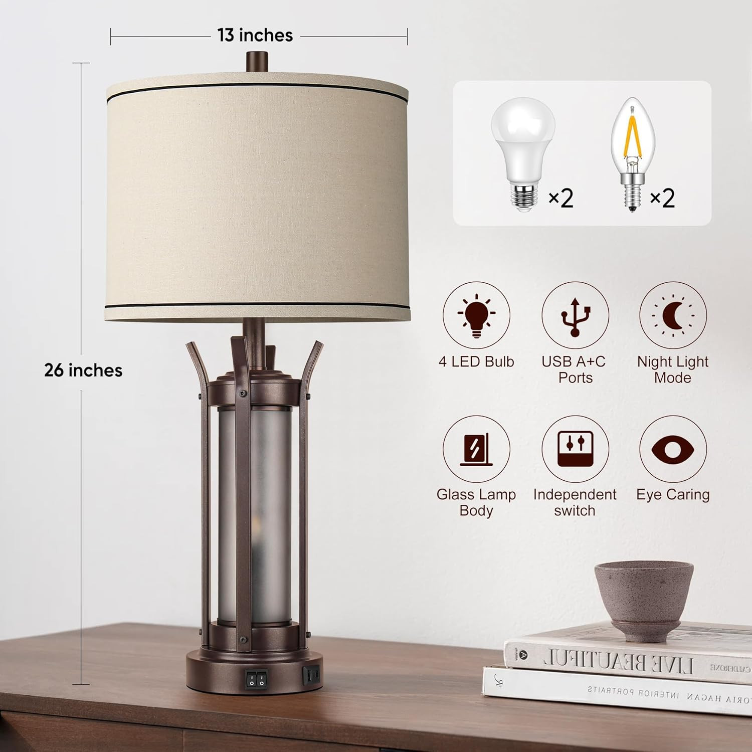 как выглядит Farmhouse Table Lamps Set of 2 for Living Room, beside Lamps for Bedroom with US фото