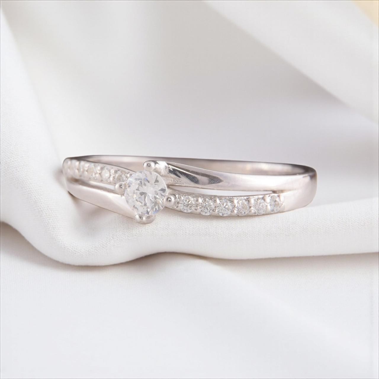 как выглядит Women engagement ring, Art deco ring, Women 925 silver ring with white CZ ring фото