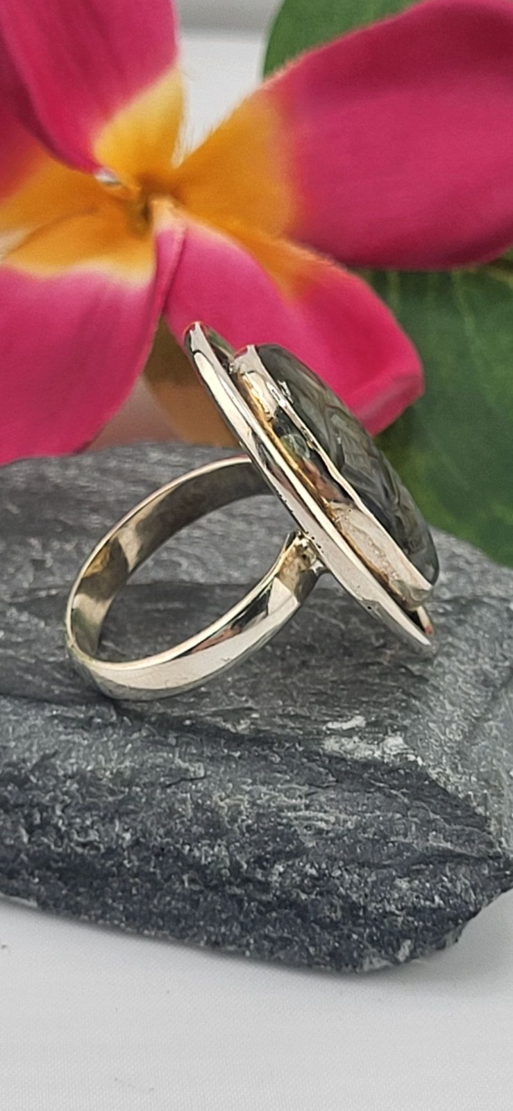 Carved Labradorite and 925 Sterling Silver Ring Size 9