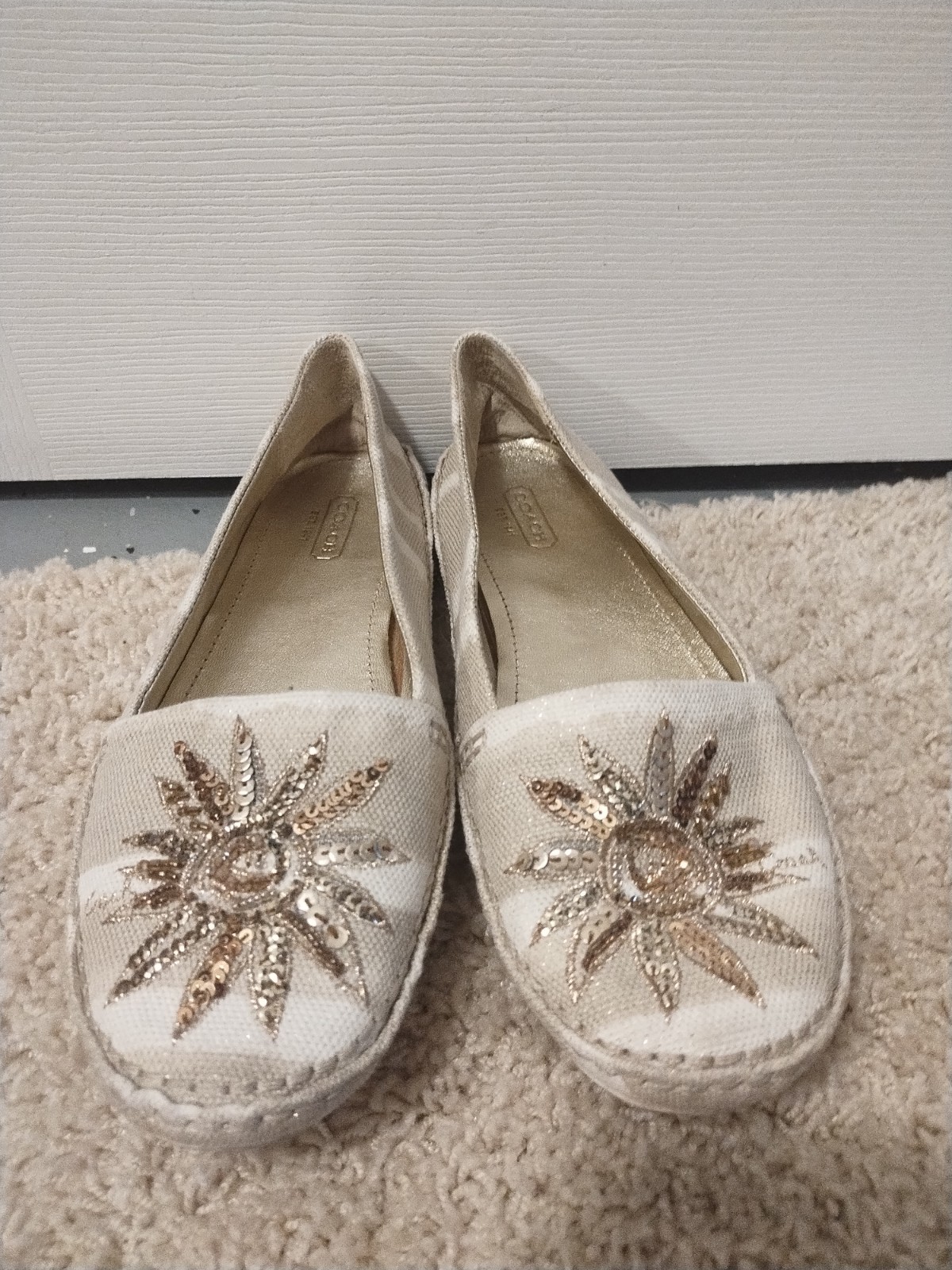 как выглядит Coach Rorie Size 8.5 Beautiful Sequin Flats EUC фото