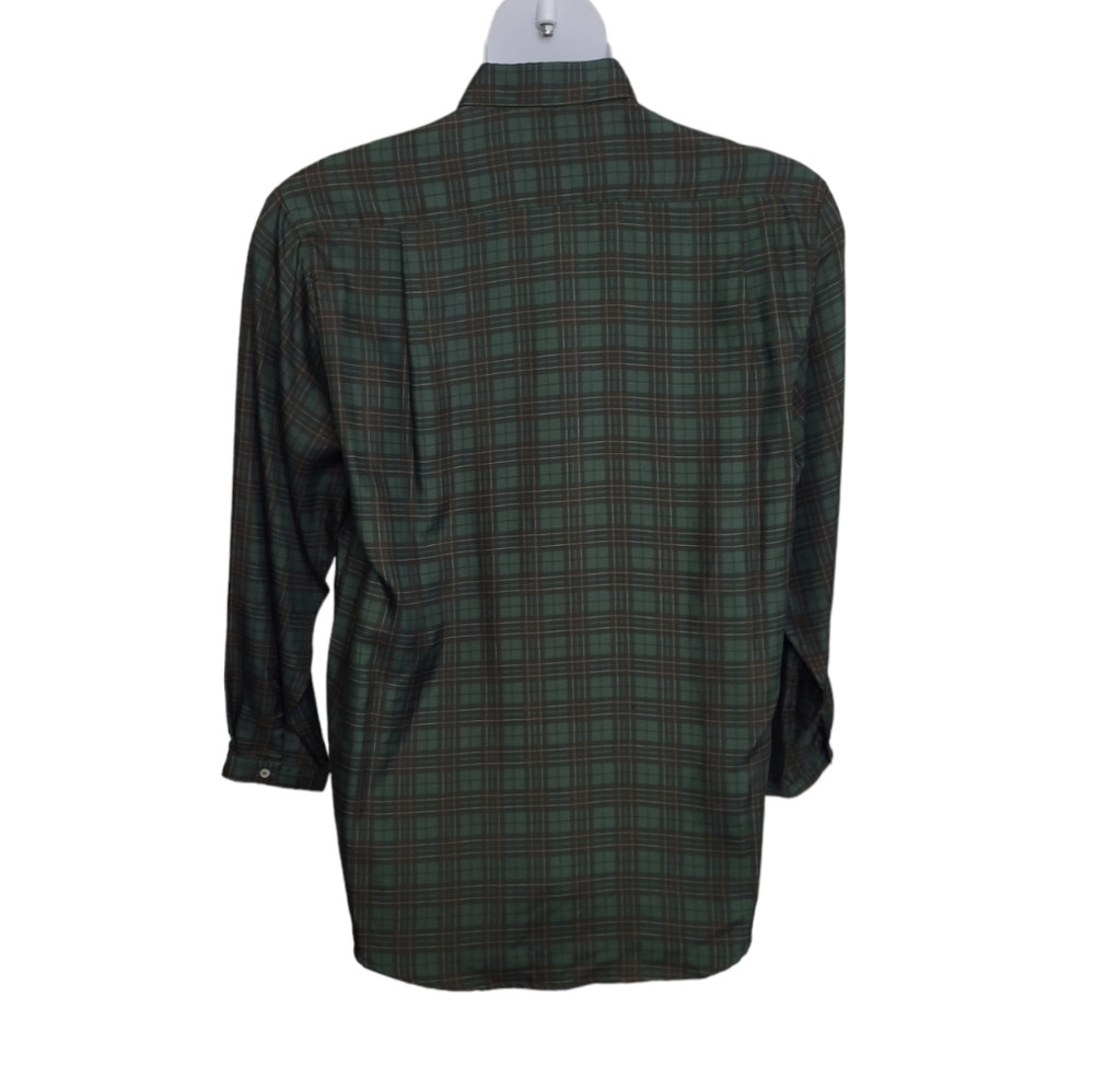 как выглядит NEW Mariano Rubinacci green tartan plaid silk button up blouse top 44/XL фото