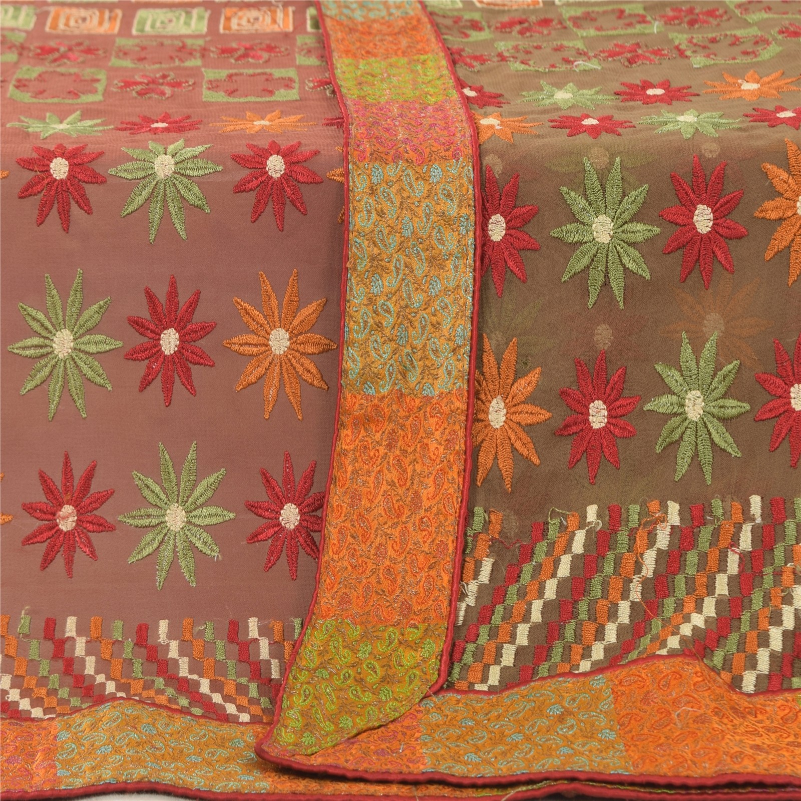 Sanskriti Vintage Pink Dupatta Long Stole Pure Georgette Silk Embroidered Veil