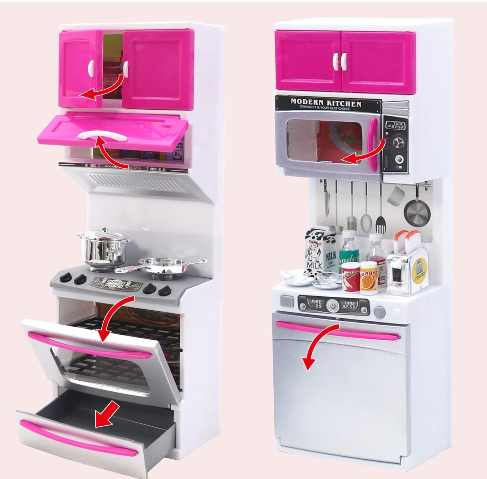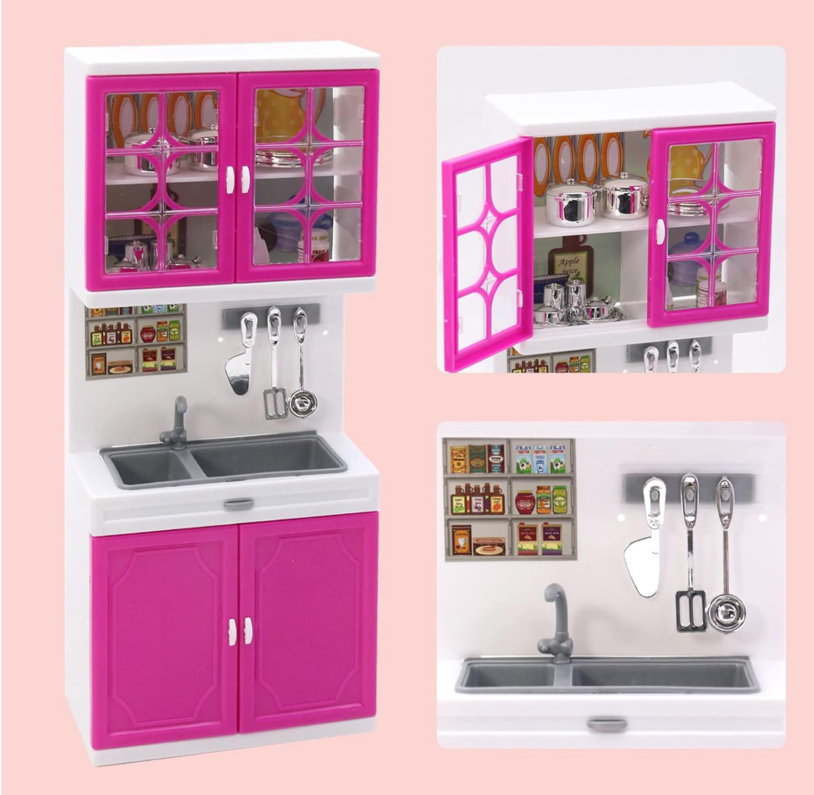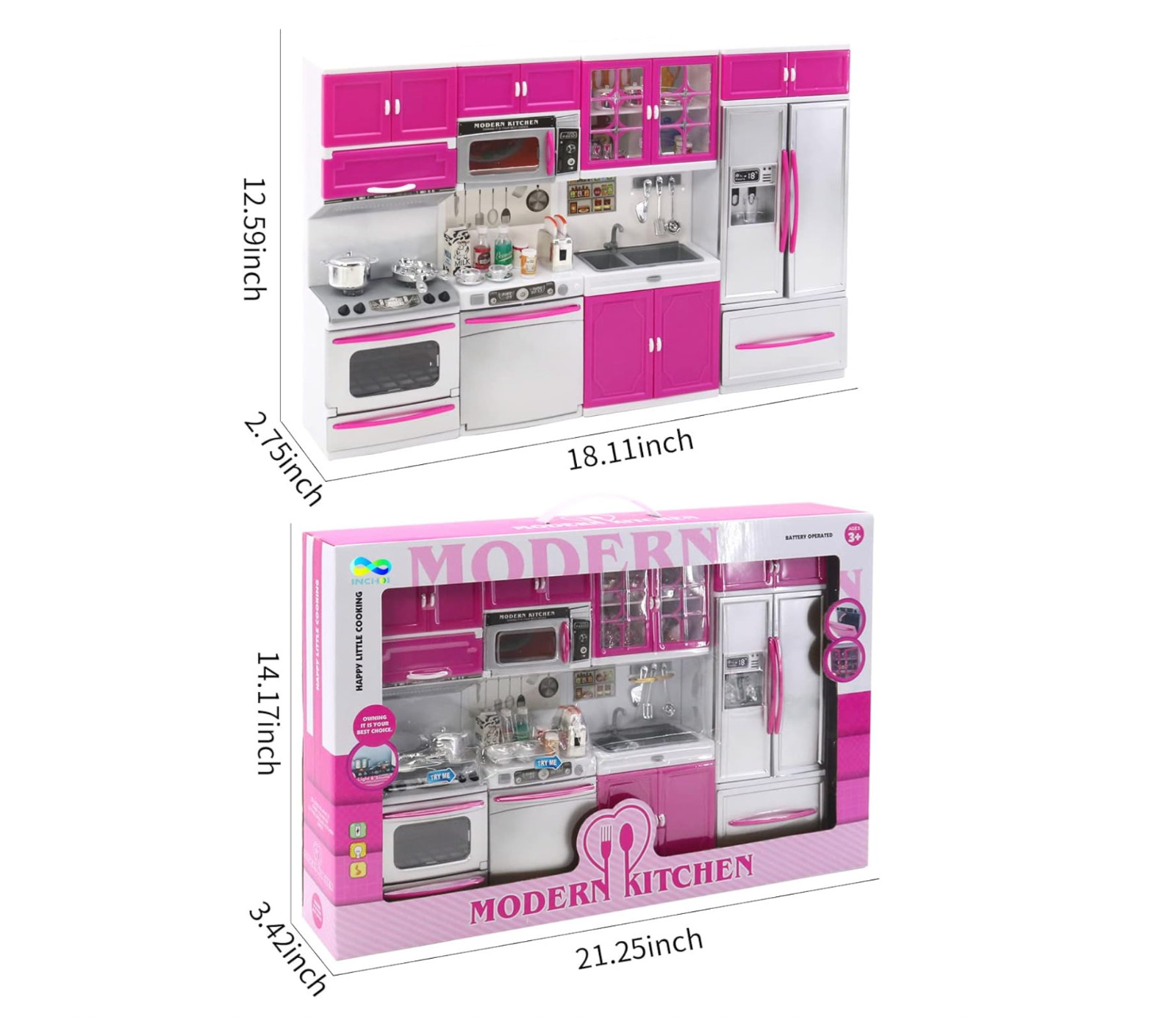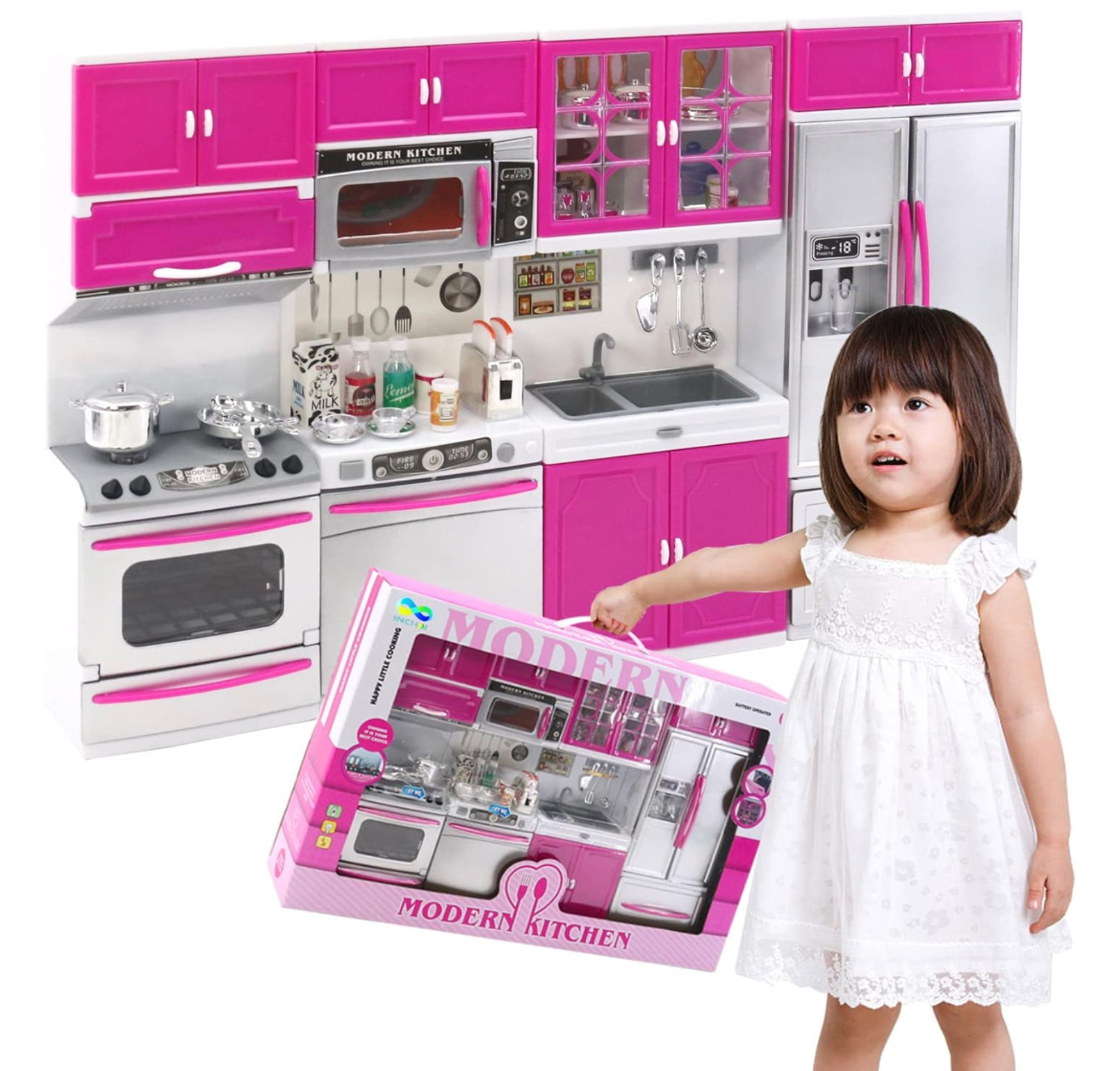 Pink Modern Toy Kitchen Set for Girls Lights Sounds Pretend Play Toys