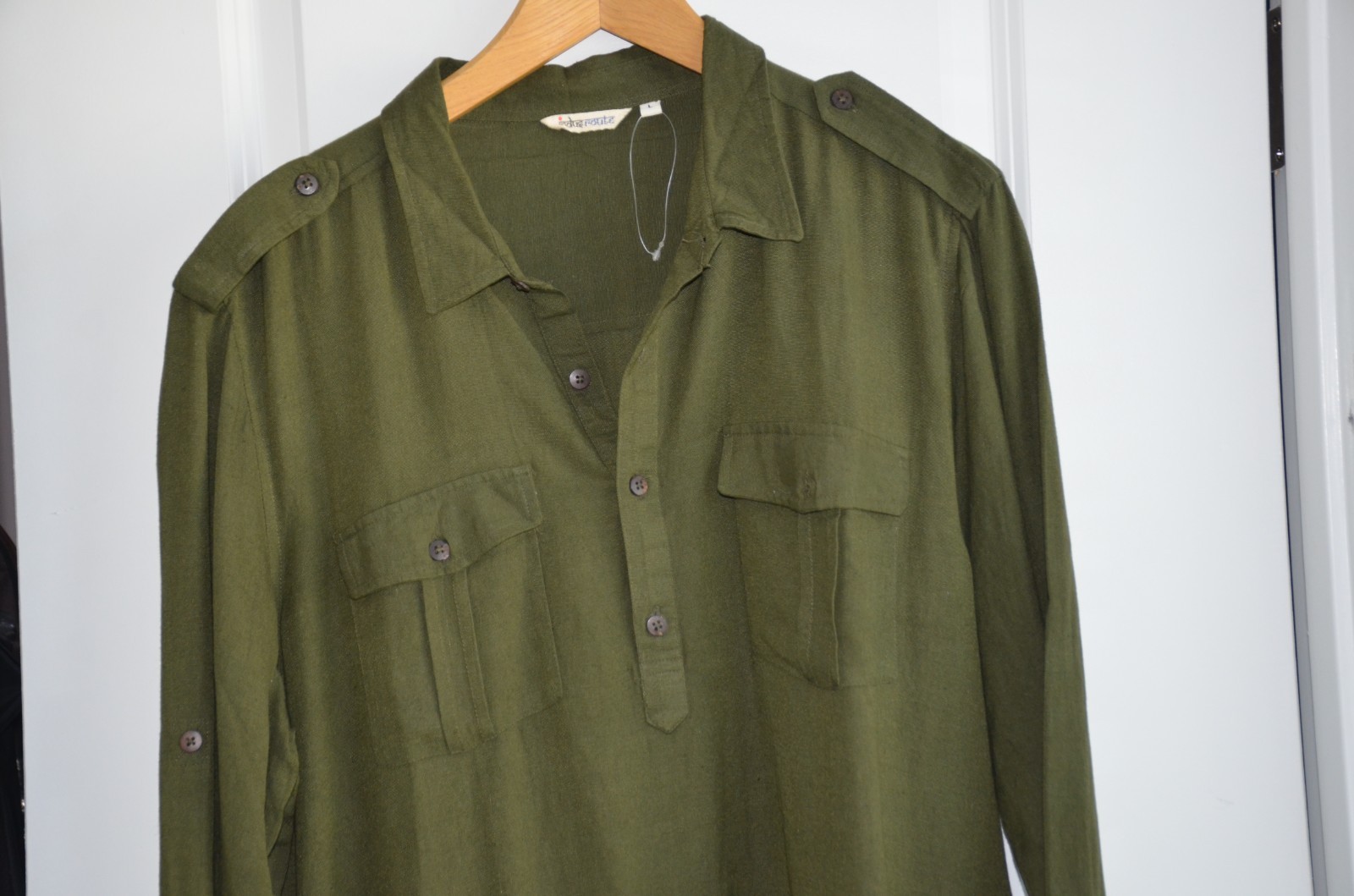 как выглядит NWT Mens Ethnic Pathan Sherwani Kurta Traditional Indian Large L green W pockets фото