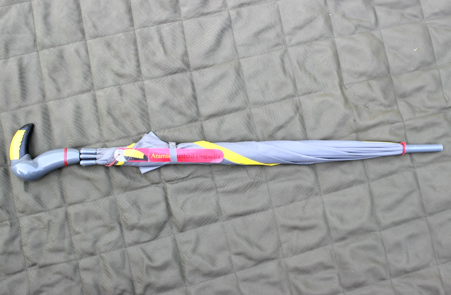 как выглядит VINTAGE ARAMIS RAINBIRD UMBRELLA ORIGINAL TAG TOUCAN HANDLE фото
