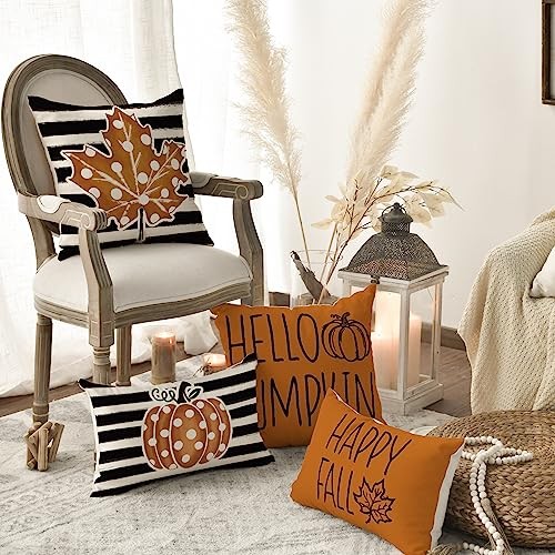 Happy Fall Hello Pumpkin Throw Pillow Covers, 18 18 x 18 Pack of 4 Orange