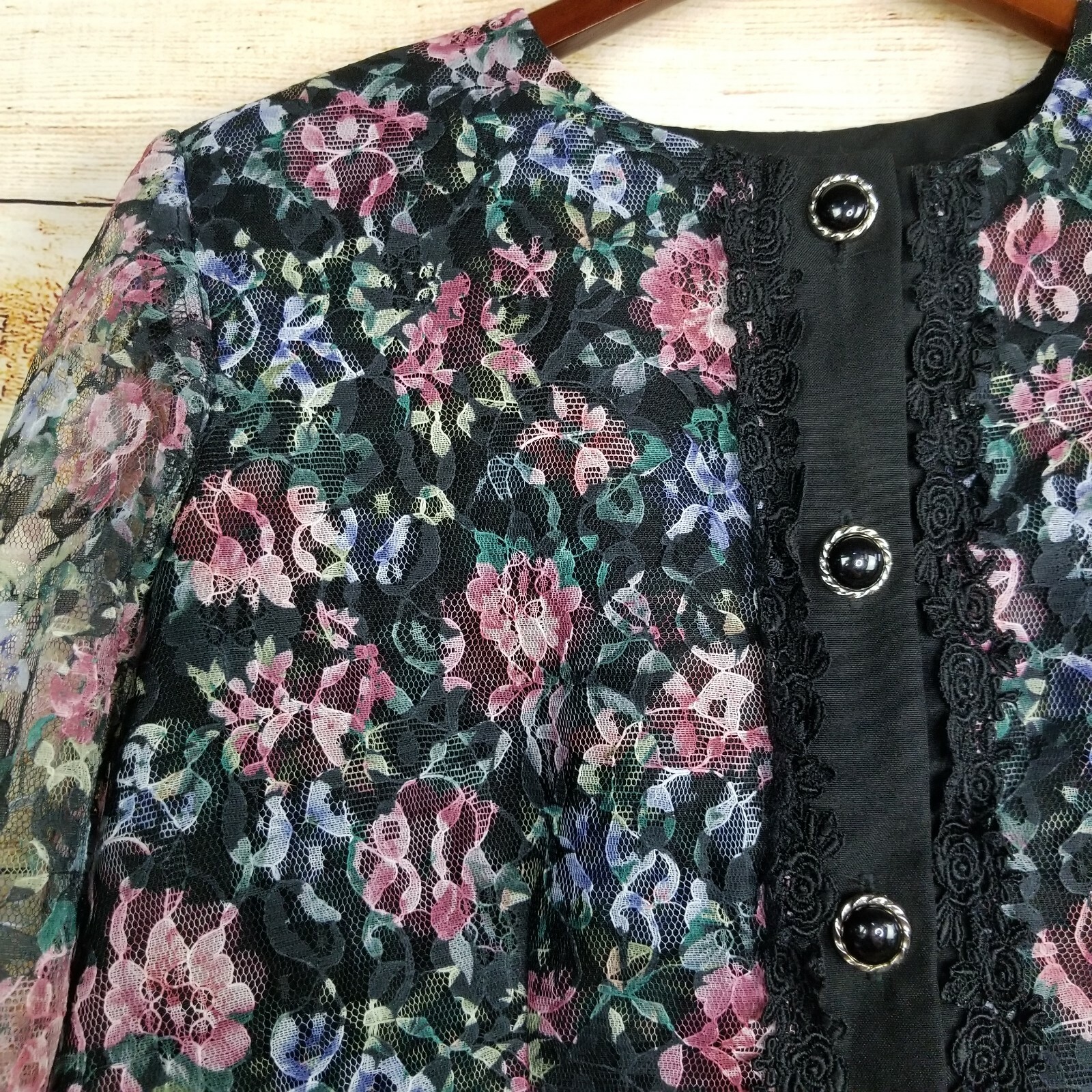 как выглядит Vintage Risa Ann New York Jacket Size 18 WP Floral Lace Button Up Blazer Pads фото
