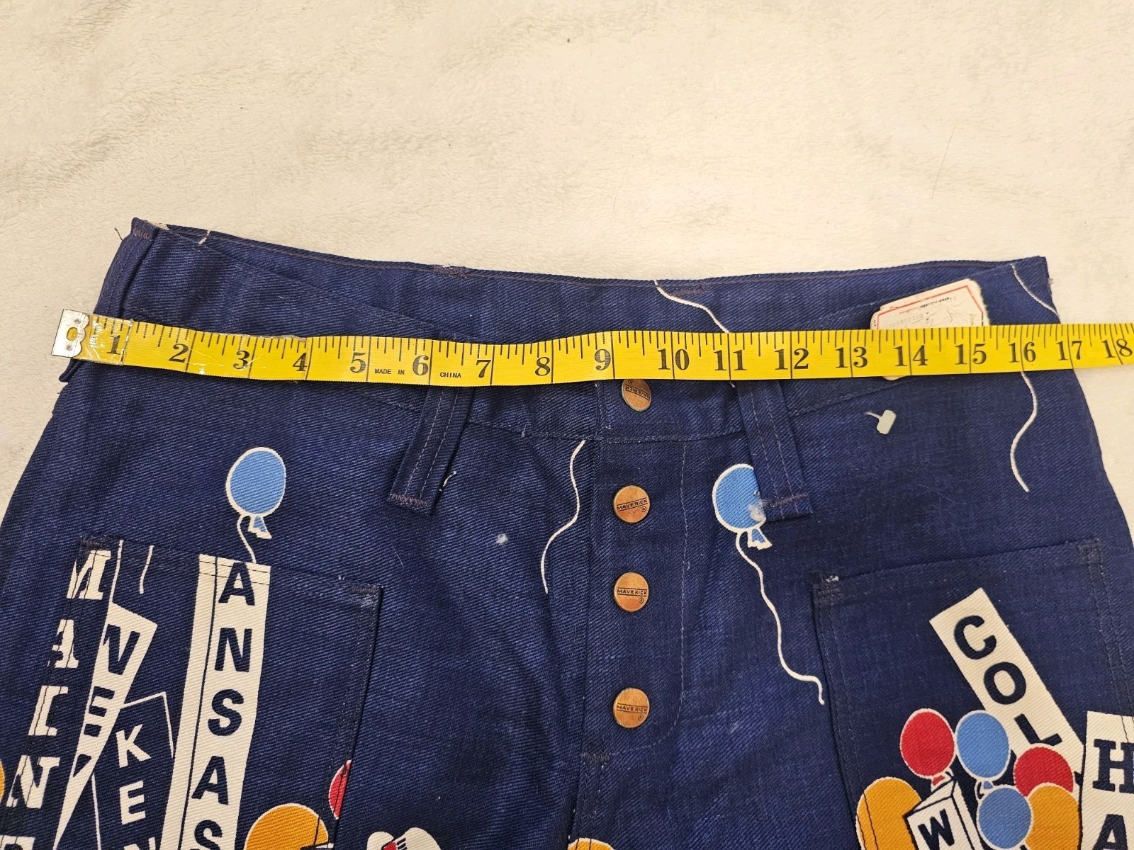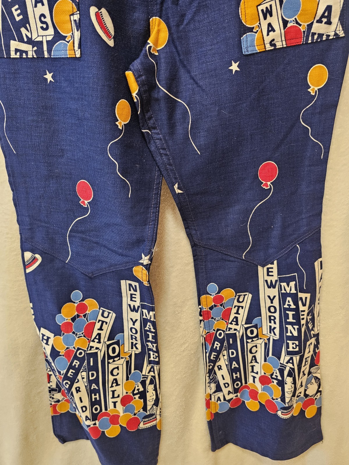 как выглядит NWOT Vtg Maverick 1970s Graphic States bellbottoms jeans wide leg pants 33.5x31 фото